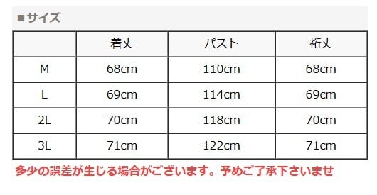 サイズ表の実寸法は商品によって1-3cm程度の誤差がある場合がございます。