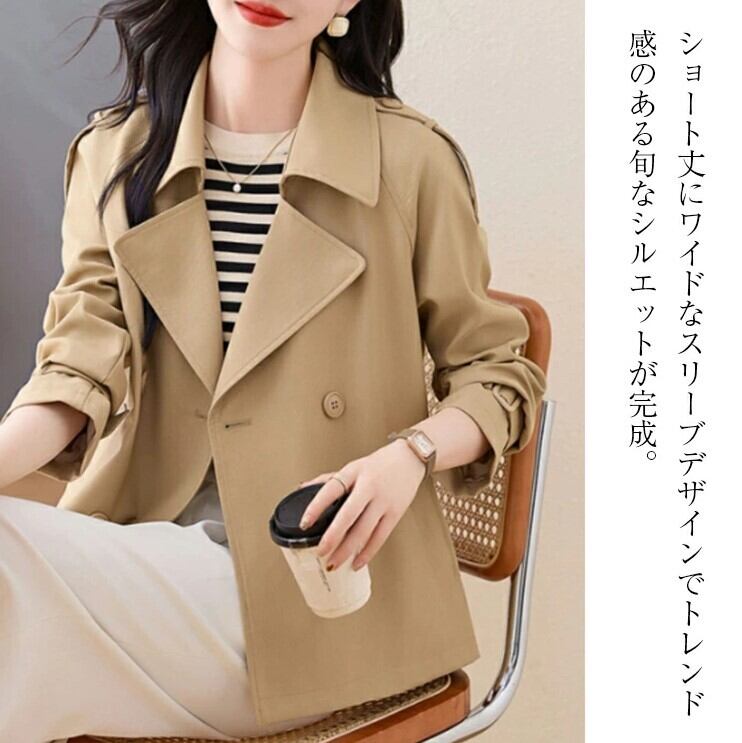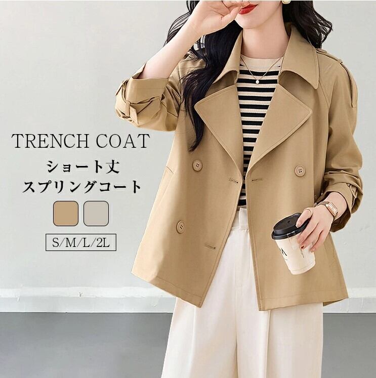 ■商品:トレンチコート ショートコート レディース 2色 S-2L 裏地付き 春秋 オフィス フォーマル 韓国 ファッション コーデ おすすめ カジュアル きれいめ 大きいサイズ 人気 ゆったり 20代 30代 40代 50代