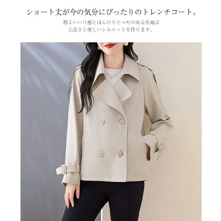 トレンチコート ショートコート レディース 2色 S-2L 裏地付き 春秋 オフィス フォーマル 26LT44