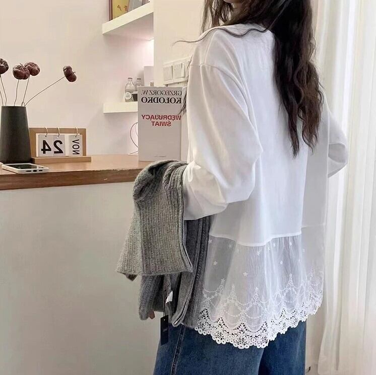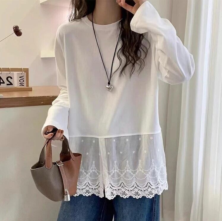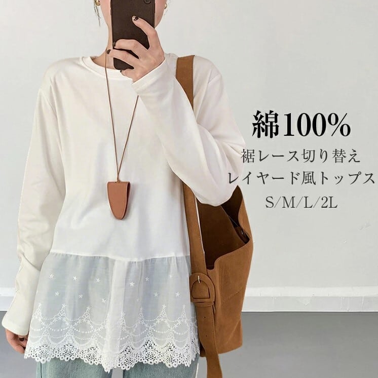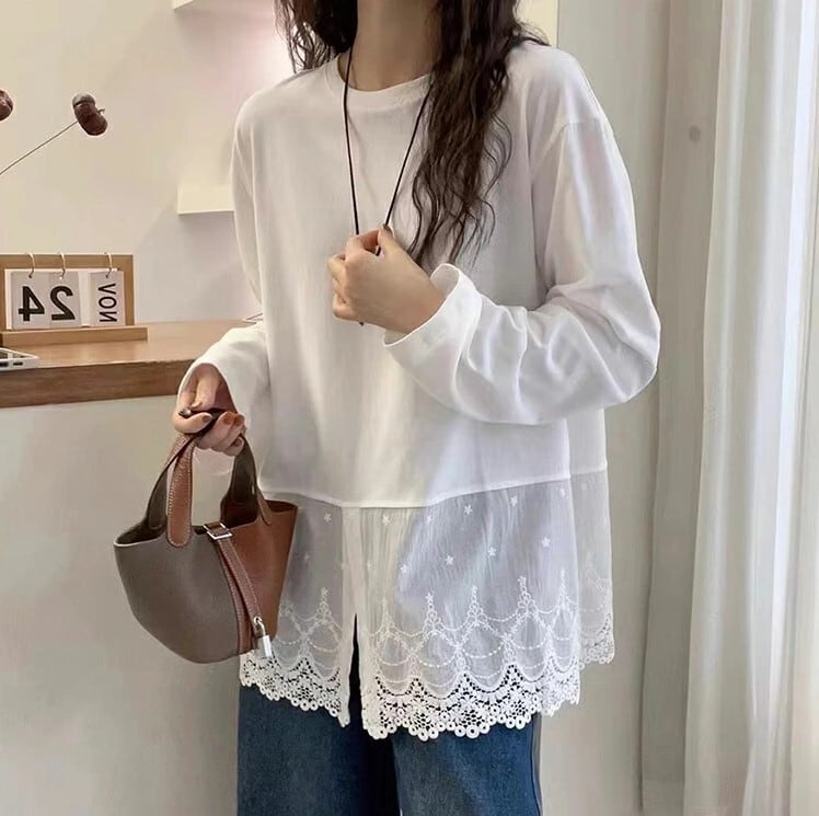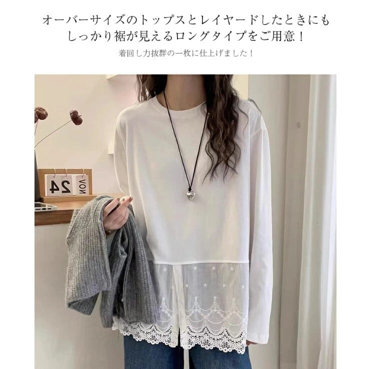 ■商品:ブラウス レイヤード 刺繍レース切り替え レディース S-2L 9分丈 長袖 トップス ロンt チュニック 韓国 ファッション コーデ おすすめ カジュアル きれいめ 大きいサイズ 人気 ゆったり 20代 30代 40代 50代