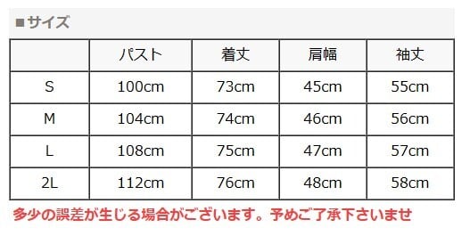 サイズ表の実寸法は商品によって1-3cm程度の誤差がある場合がございます。