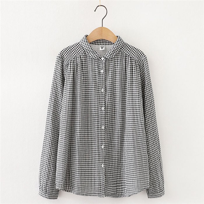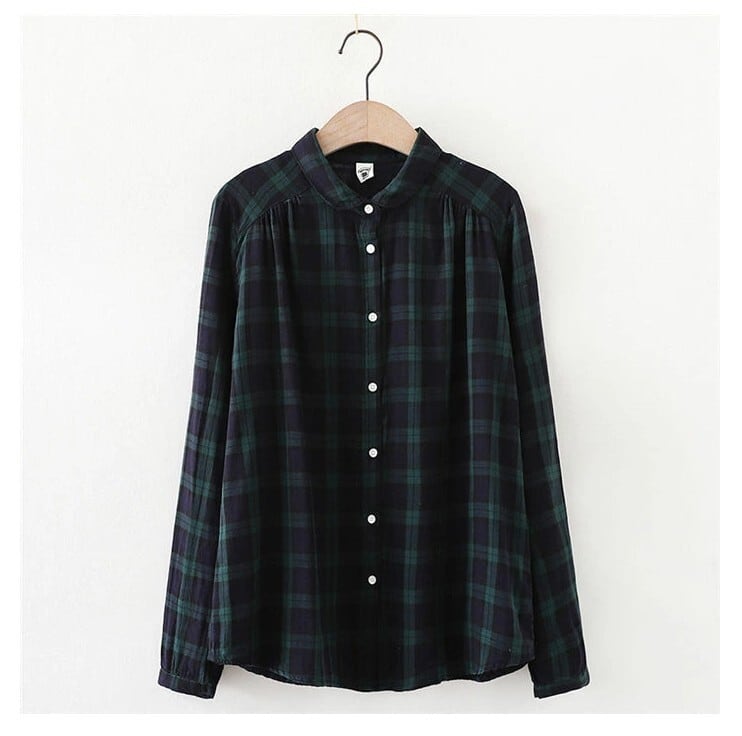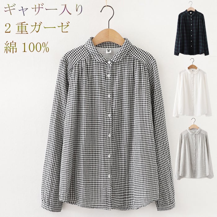 シャツ 長袖 長袖シャツ レディース 4色 M-L 無地 チェック柄 綿 ガーゼシャツ ブラウス カジュアル 26LT52