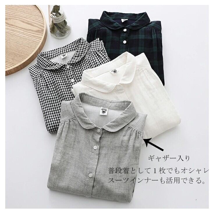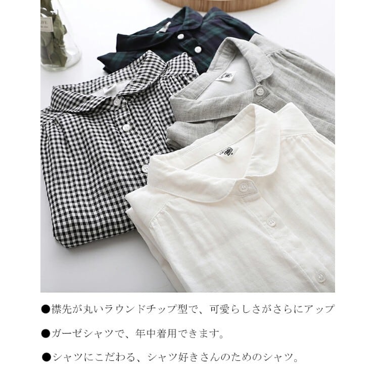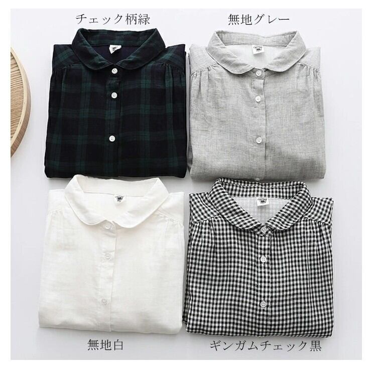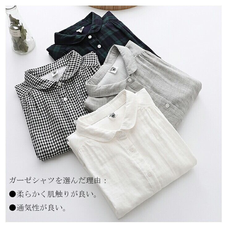 ■商品:シャツ 長袖 長袖シャツ レディース 4色 M-L 無地 チェック柄 綿 ガーゼシャツ ブラウス カジュアル 韓国 ファッション コーデ おすすめ カジュアル きれいめ 大きいサイズ 人気 ゆったり 20代 30代 40代 50代