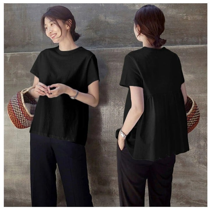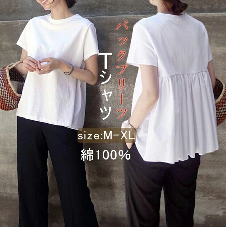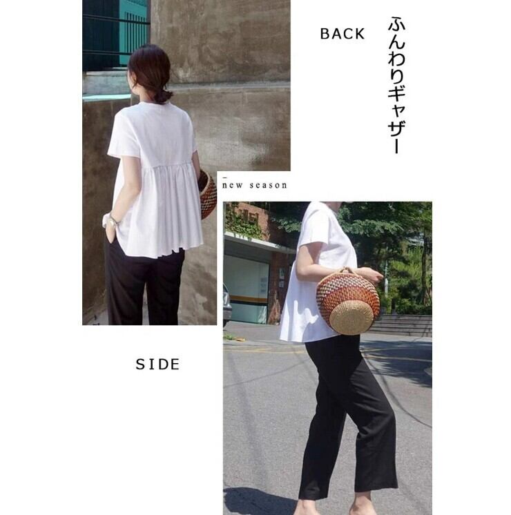■商品:ブラウス 半袖 tシャツ レディース 4色 M-XL バックフリル ギャザー 無地 きれいめ カジュアル 韓国 ファッション コーデ おすすめ カジュアル きれいめ 大きいサイズ 人気 ゆったり 20代 30代 40代 50代