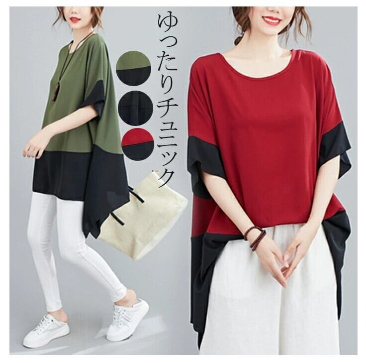 ■商品:チュニック tシャツ 半袖 レディース 3色 フリーサイズ ワンピース ゆったり ロング丈 トップス 韓国 ファッション コーデ おすすめ カジュアル きれいめ 大きいサイズ 人気 ゆったり 20代 30代 40代 50代