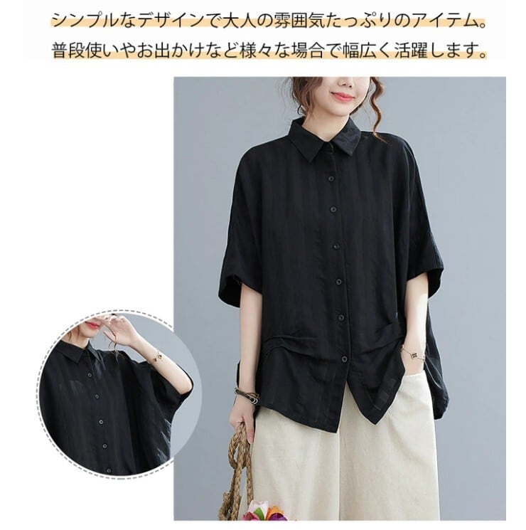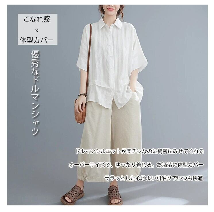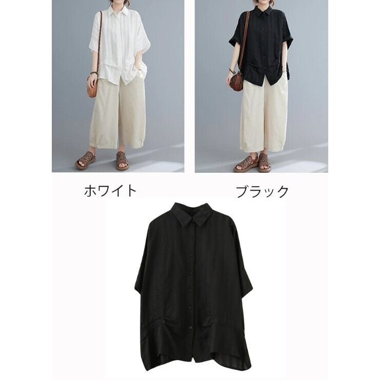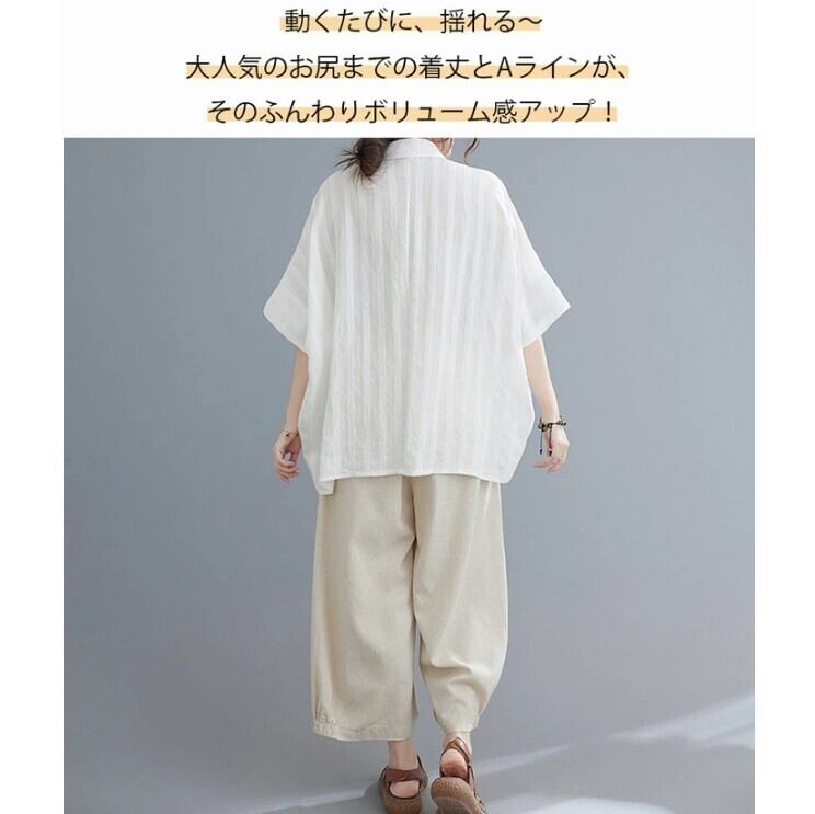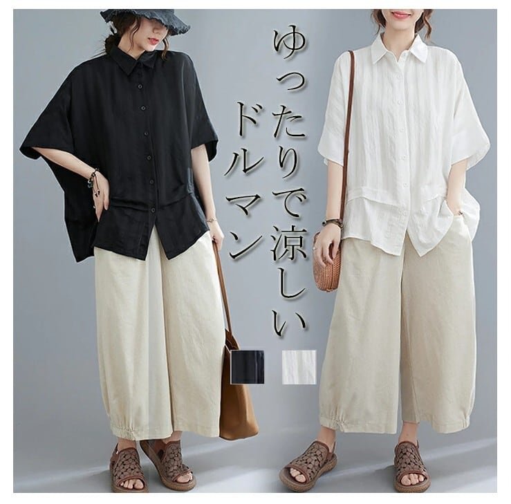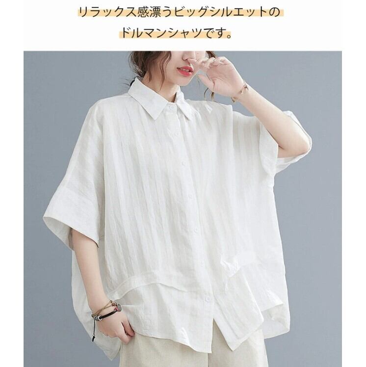 ■商品:チュニック 半袖シャツ レディース 2色 フリーサイズ 綿麻 ブラウス ドルマン ゆったり 韓国 ファッション コーデ おすすめ カジュアル きれいめ 大きいサイズ 人気 ゆったり 20代 30代 40代 50代