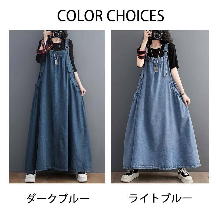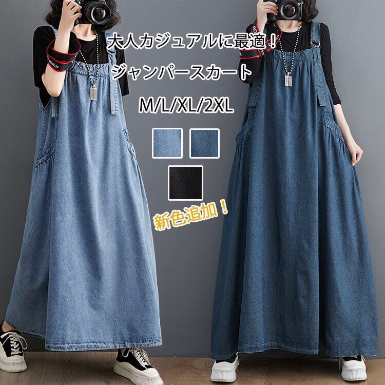ジャンパースカート デニム デニムワンピース レディース 3色 M-XL ゆったり サロペット カジュアル 26LT61