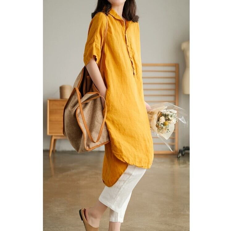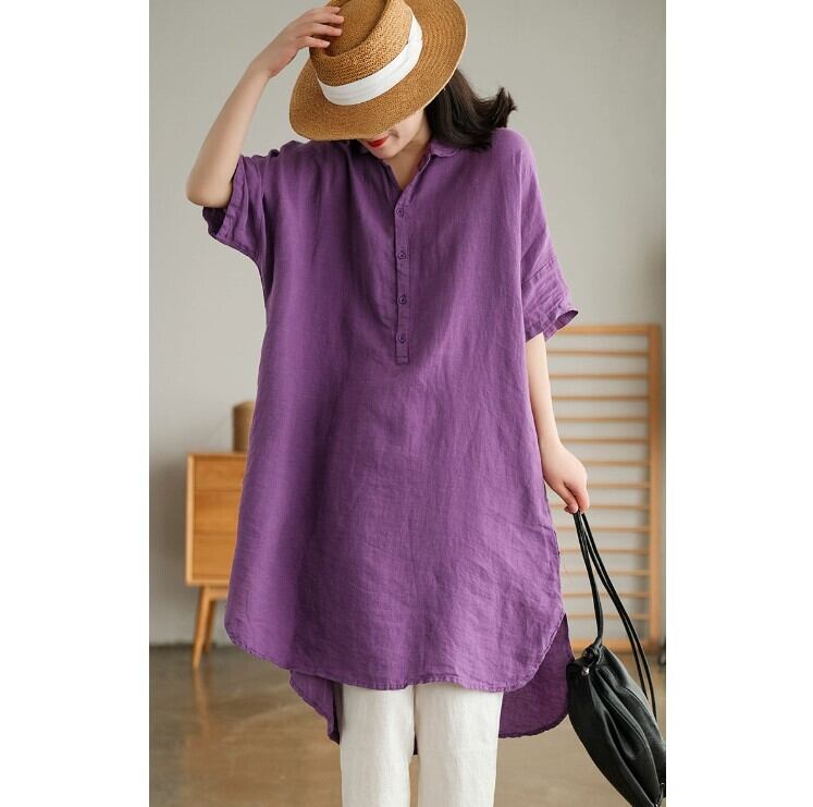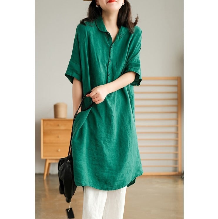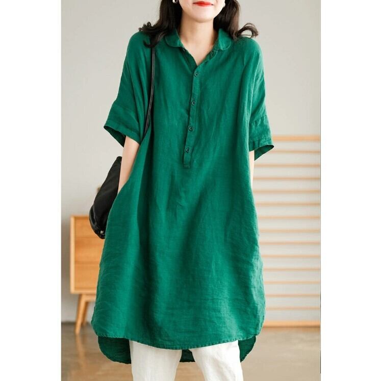 チュニック シャツワンピース 綿麻 レディース 5色 M-2XL 半袖 無地 リネン Aライン ゆったり カジュアル 26LT65