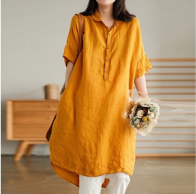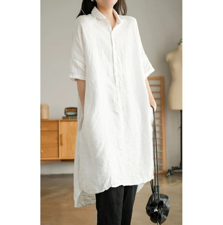 ■商品:チュニック シャツワンピース 綿麻 レディース 5色 M-2XL 半袖 無地 リネン Aライン ゆったり カジュアル 韓国 ファッション コーデ おすすめ カジュアル きれいめ 大きいサイズ 人気 ゆったり 20代 30代 40代 50代