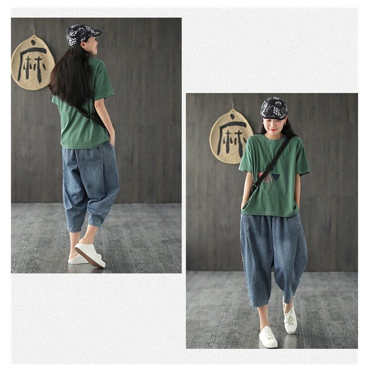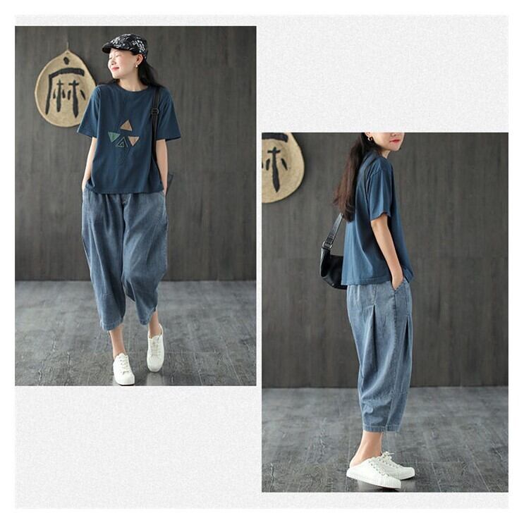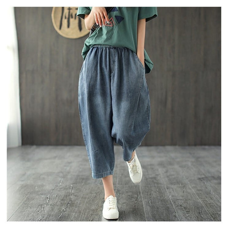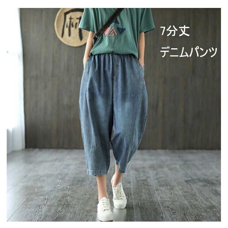 ■商品:デニムパンツ サルエルパンツ ワイド 7分丈 レディース ブルー M-L ゆったり 薄手 カジュアル 韓国 ファッション コーデ おすすめ カジュアル きれいめ 大きいサイズ 人気 ゆったり 20代 30代 40代 50代
