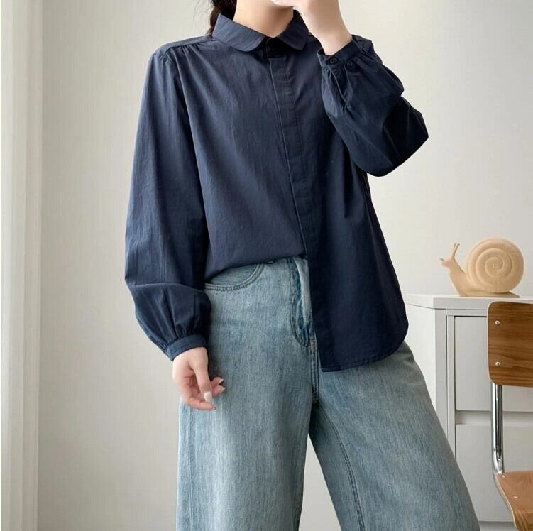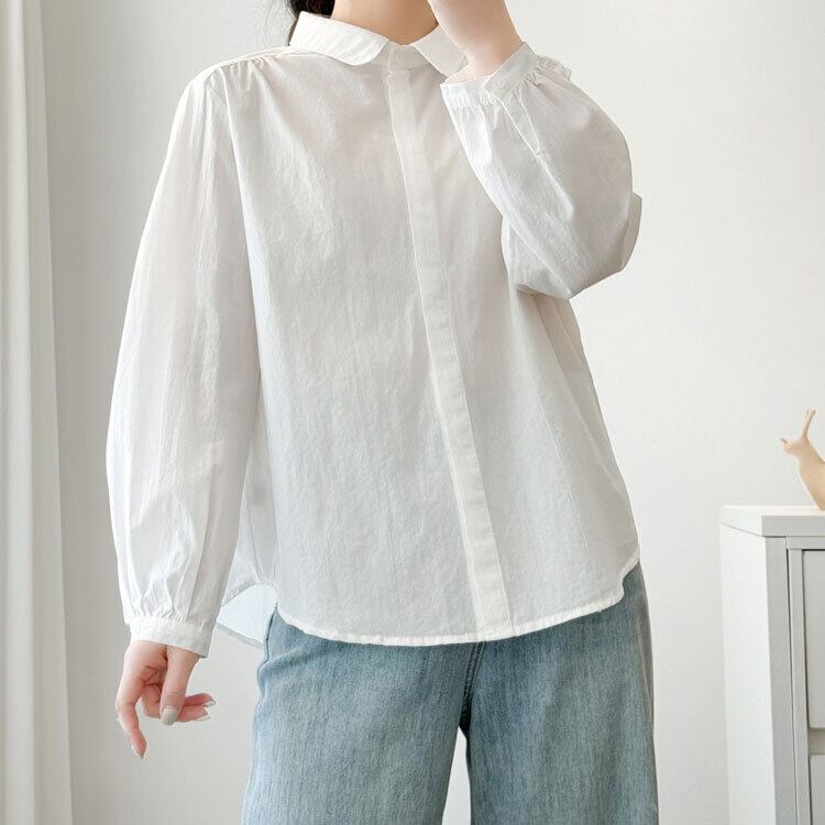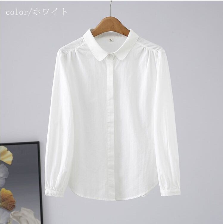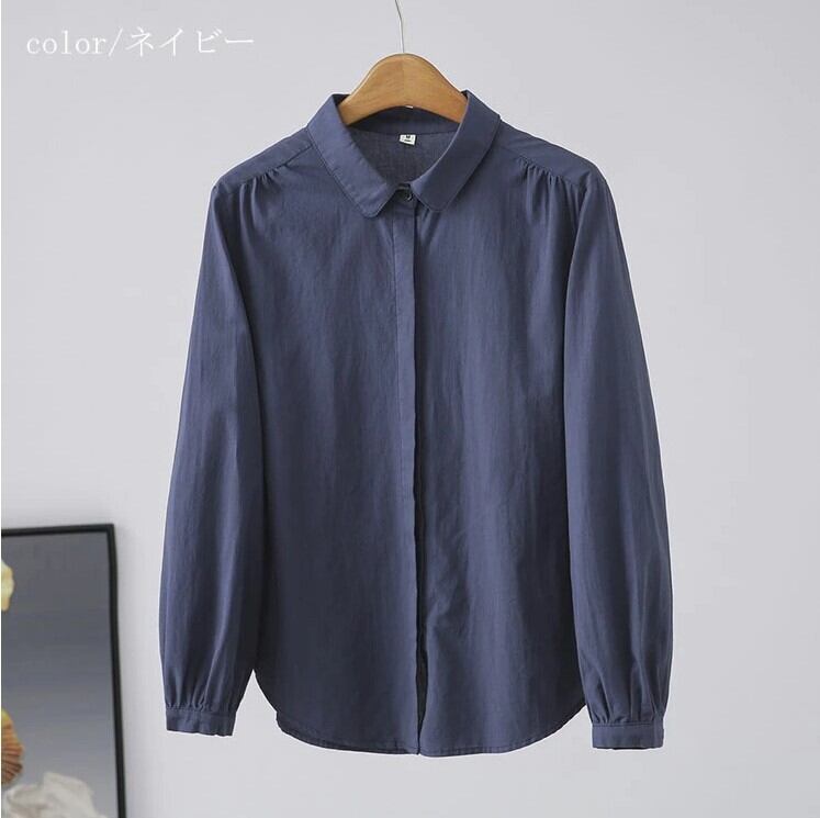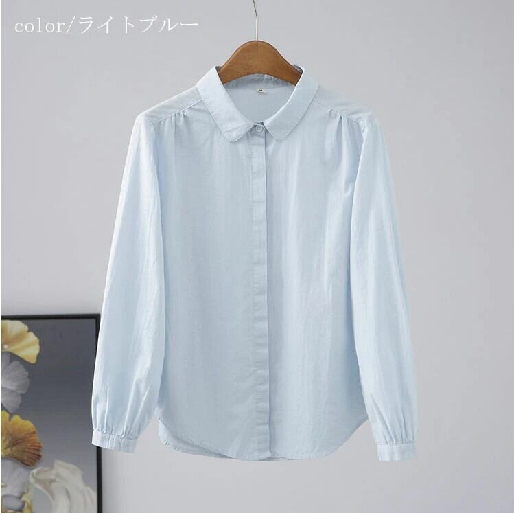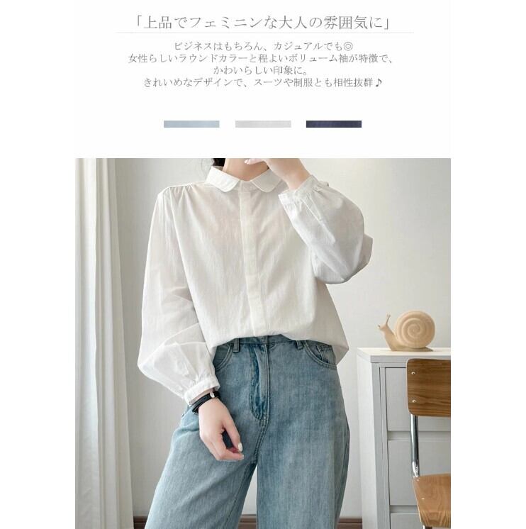 シャツ ブラウス ボリューム袖 レディース 3色 M-XL トップス 無地 オフィス カジュアル 26LT75