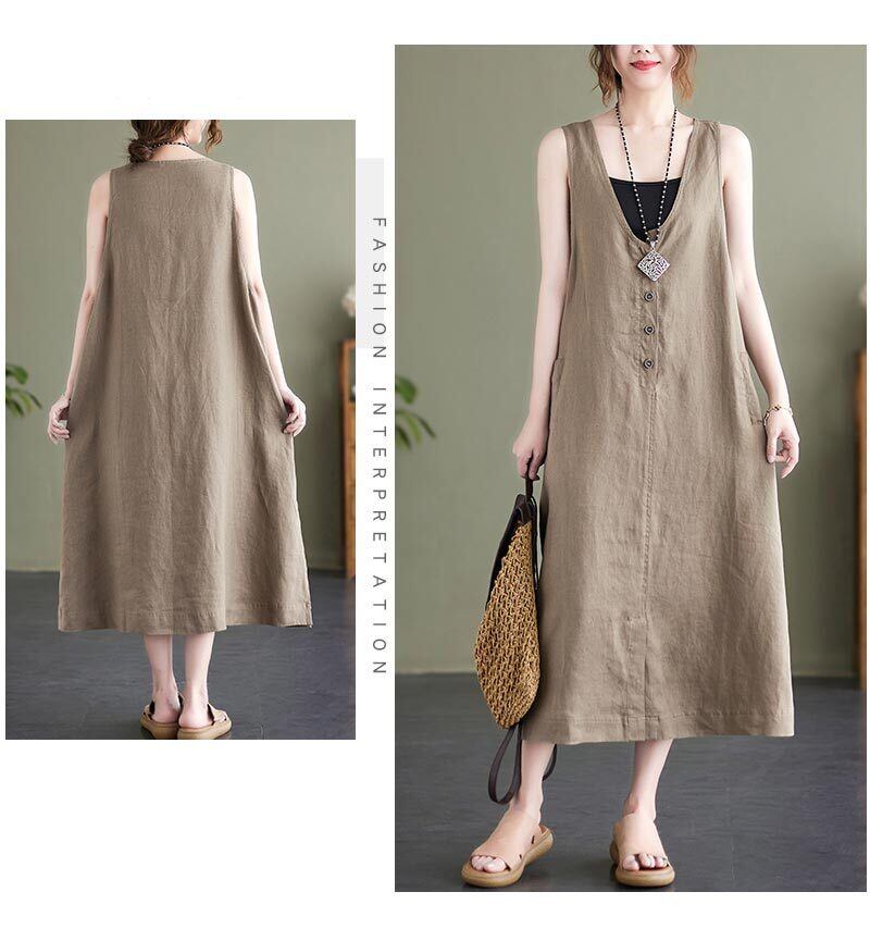■商品:ジャンパースカート ロングワンピース 綿麻 レディース 2色 M-2XL 無地 Vネック Aライン カジュアル 韓国 ファッション コーデ おすすめ カジュアル きれいめ 大きいサイズ 人気 ゆったり 20代 30代 40代 50代