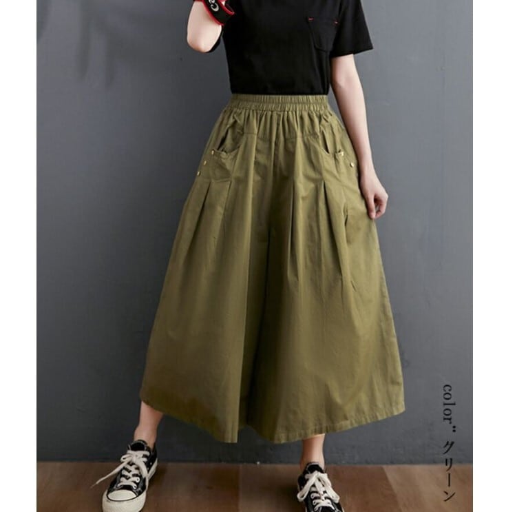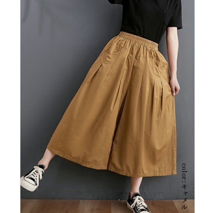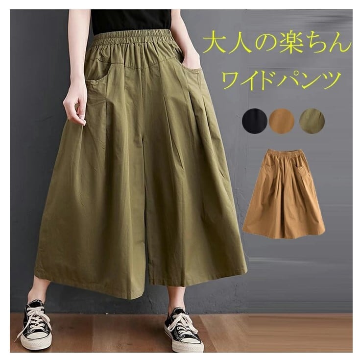 ■商品:ワイドパンツ 9分丈 ガウチョパンツ レディース 3色 M-L ゆったり 無地 ウエストゴム カジュアル 韓国 ファッション コーデ おすすめ カジュアル きれいめ 大きいサイズ 人気 ゆったり 20代 30代 40代 50代
