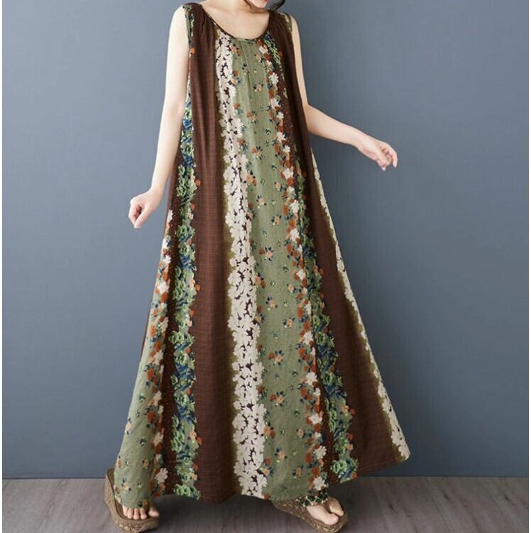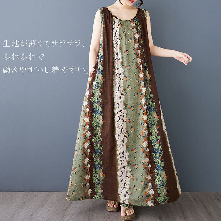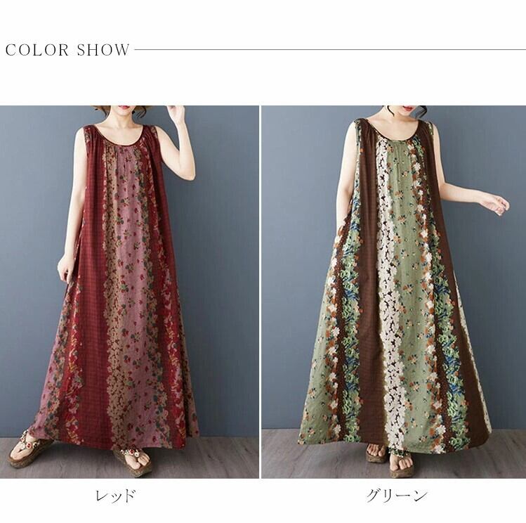 ワンピース マキシワンピース 花柄 レディース 2色 L-XL ノースリーブワンピース Aライン 夏 カジュアル 26LT86