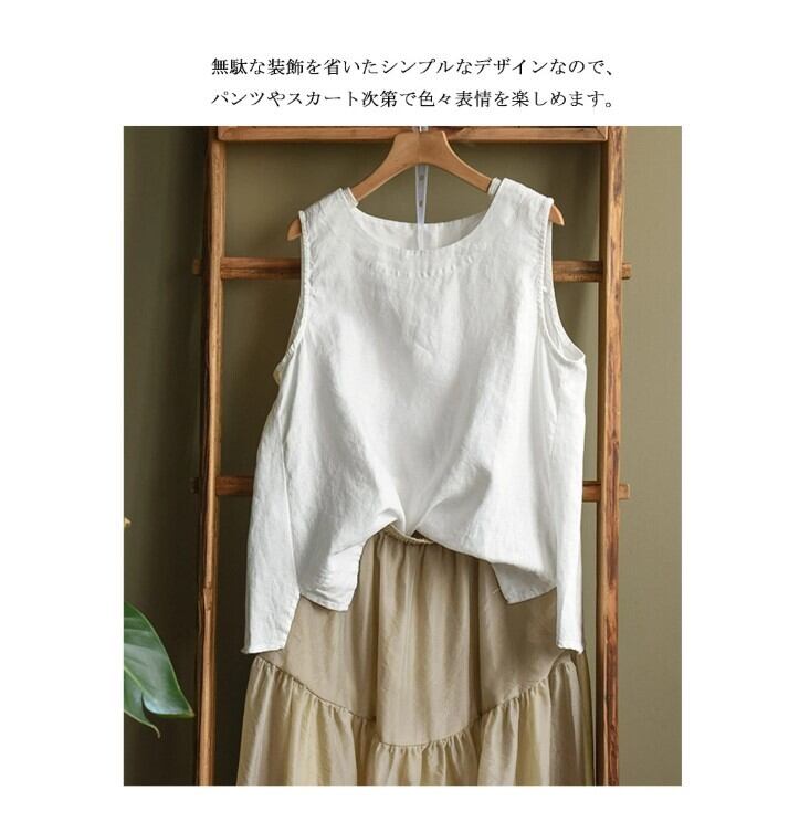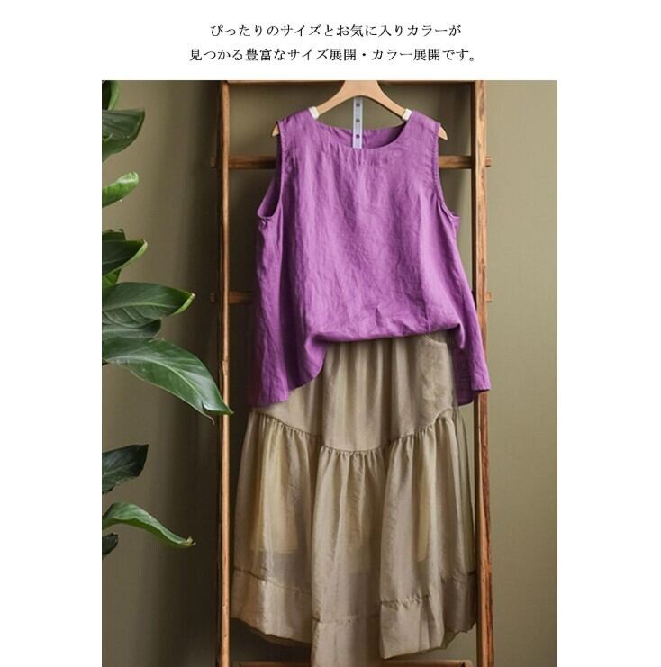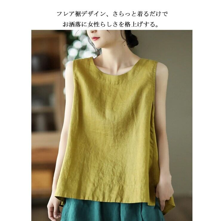 ★特徴:『このノースリーブトップスは、軽やかな綿麻素材で夏に最適な一着です!フレアデザインが女性らしさを引き立て、ラウンドネックが首元をすっきりと見せてくれます。全6色の豊富なカラーバリエーションから、お好きなスタイルに合わせたカラーを選んで、あなたのコーディネートを楽しんでみませんか!』