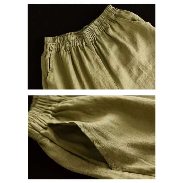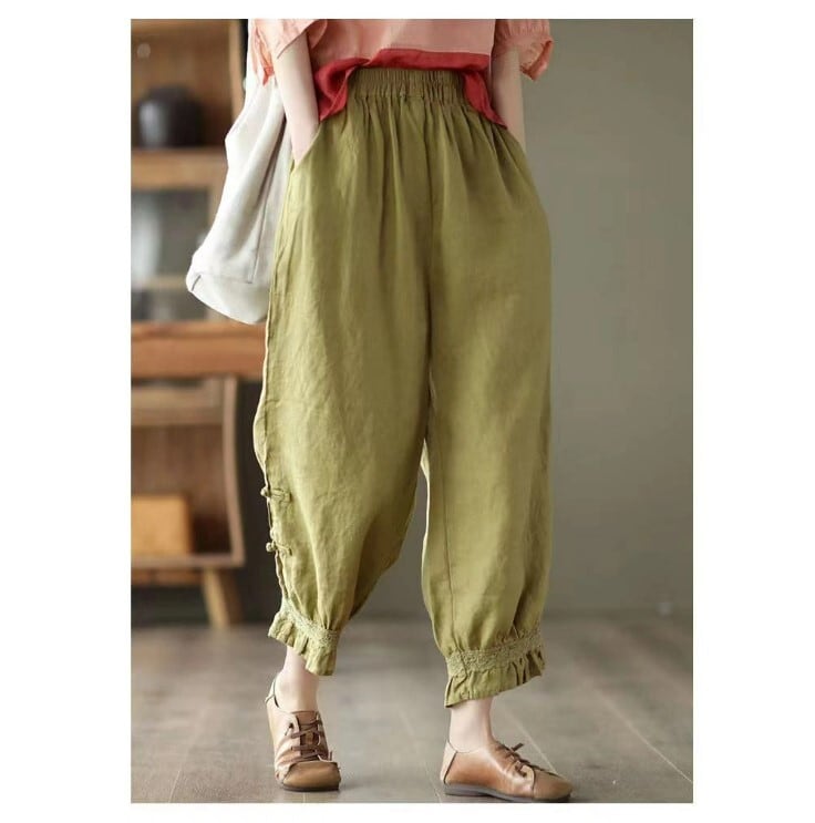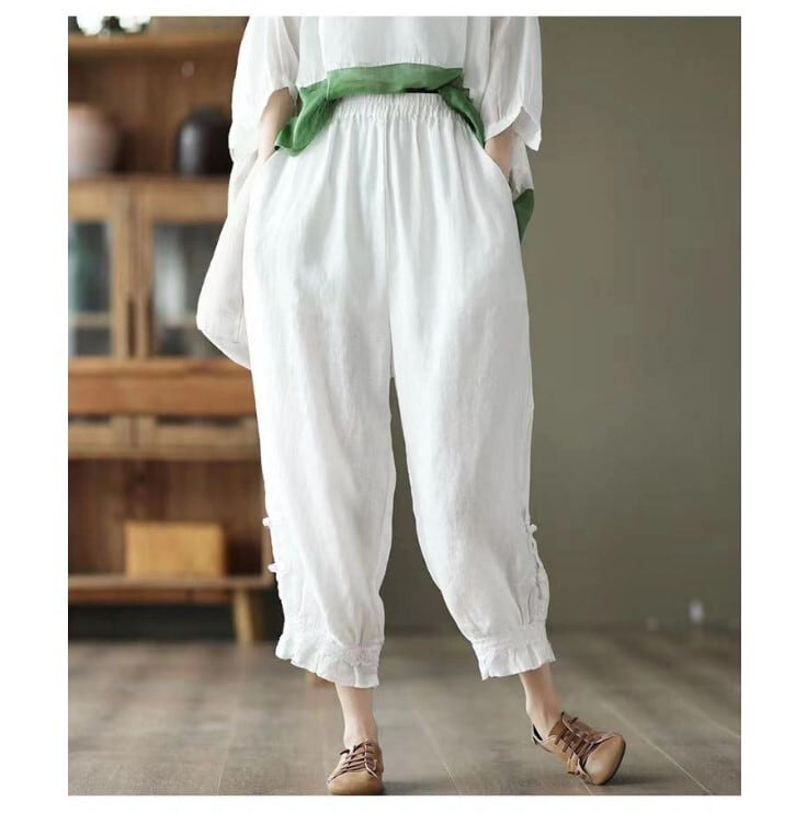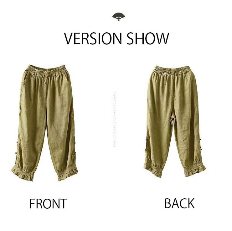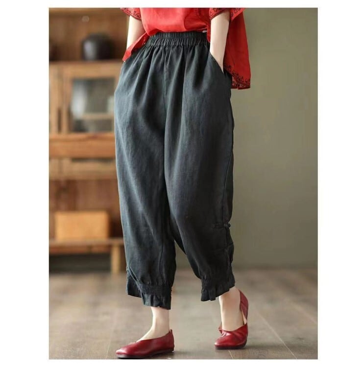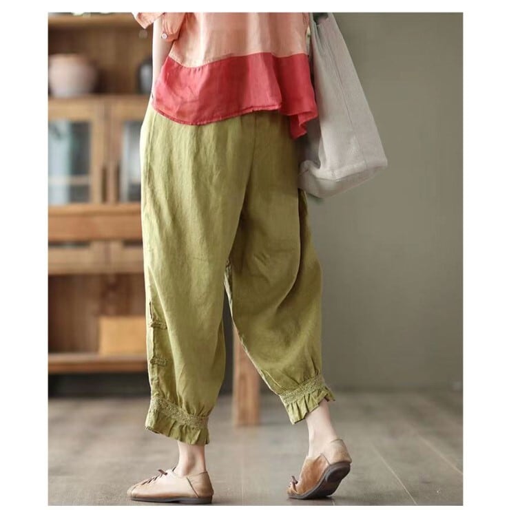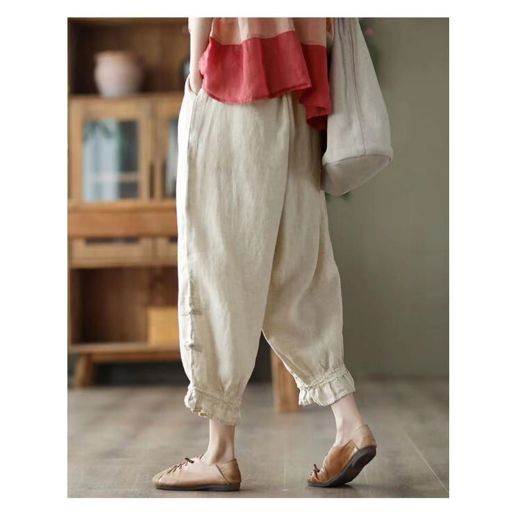 『こちらのアイテムは、綿麻素材を使用しているため、夏でもさらりと快適に着用でき、シーズン問わず活躍します。9分丈のデザインは、脚をすっきり見せる効果もあるので、スタイルアップが期待できる一着です。Mから2XLのサイズ展開で、どなたにもフィットするサイズを見つけられます。』