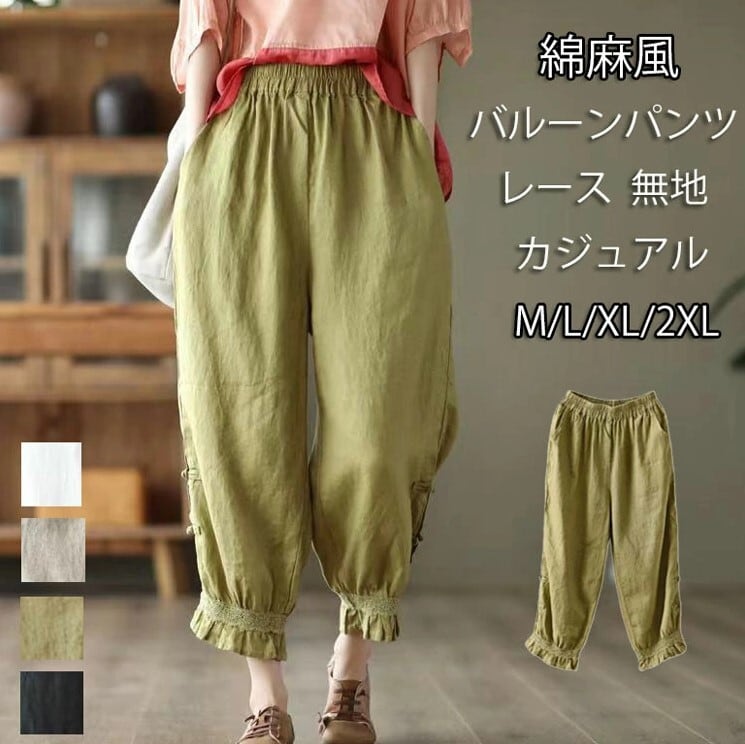 ■商品:バルーンパンツ コクーンパンツ 綿麻 レディース 4色 M-2XL ウエストゴム 無地 9分丈 ゆったり カジュアル 韓国 ファッション コーデ おすすめ カジュアル きれいめ 大きいサイズ 人気 ゆったり 20代 30代 40代 50代