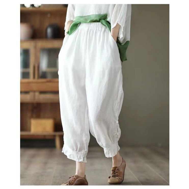 バルーンパンツ コクーンパンツ 綿麻 レディース 4色 M-2XL ウエストゴム 無地 9分丈 ゆったり カジュアル 26LT90