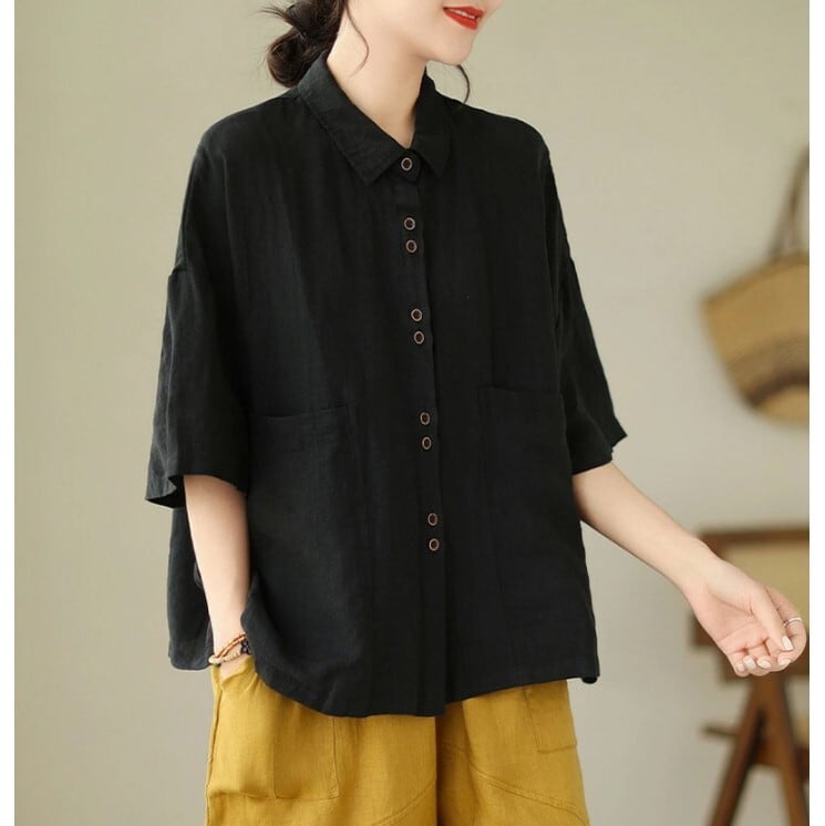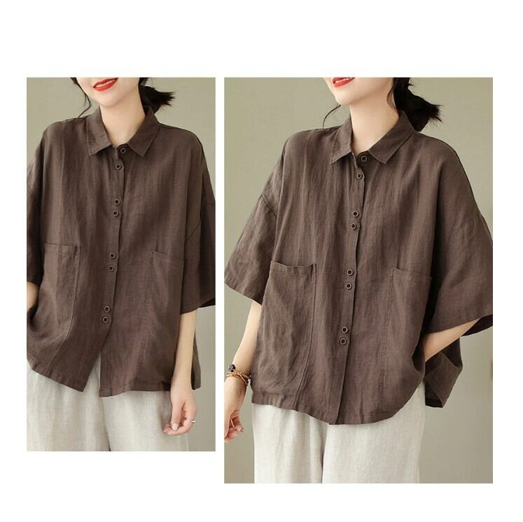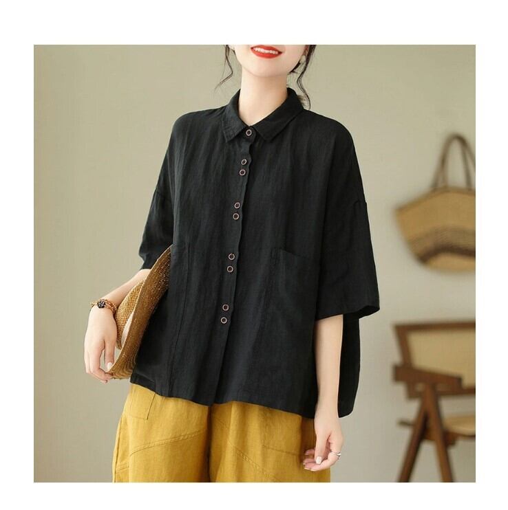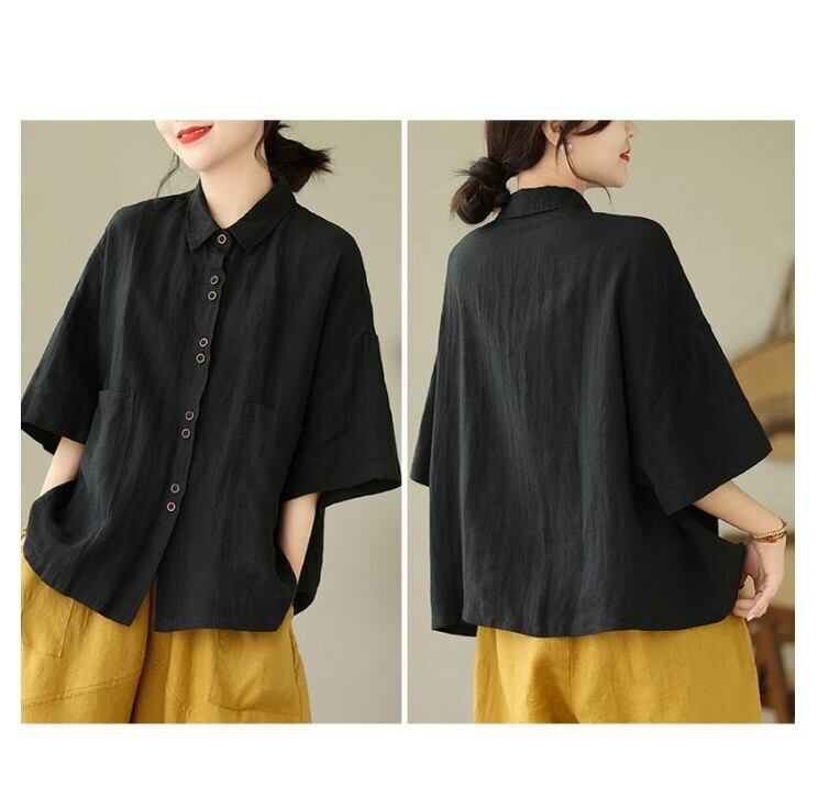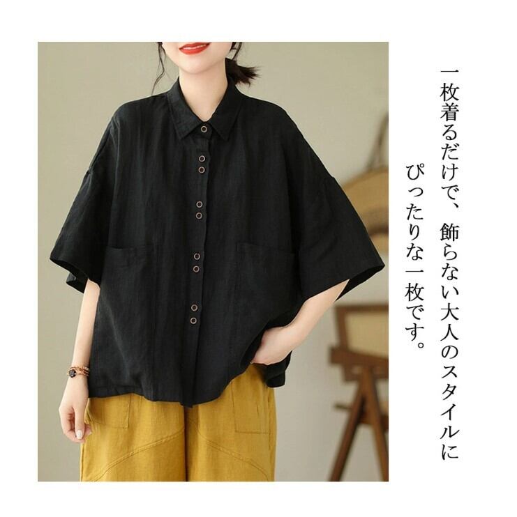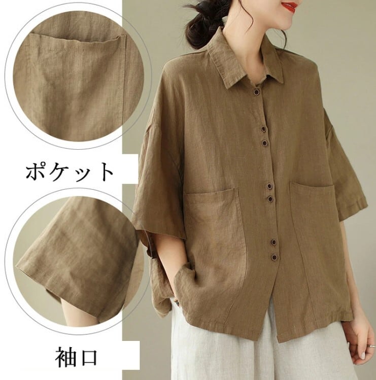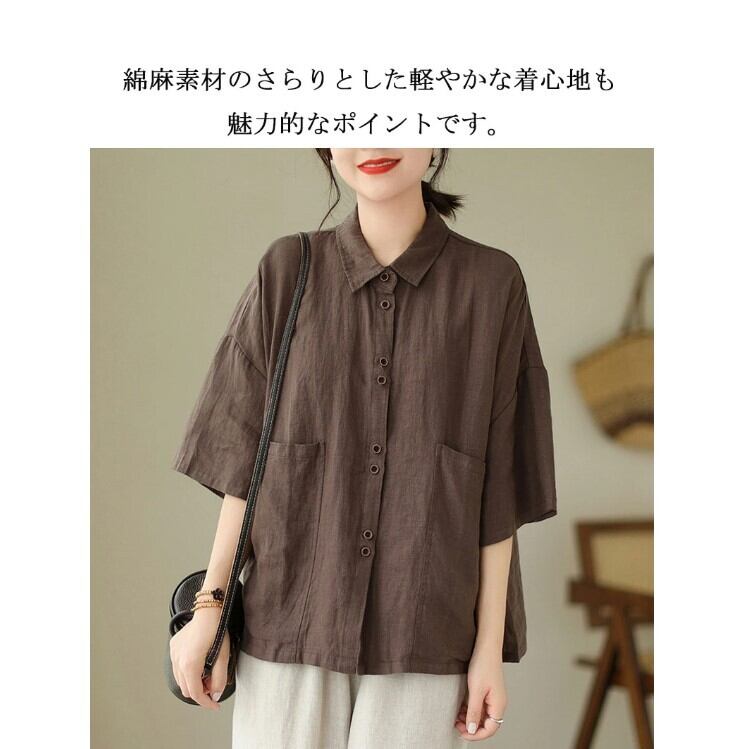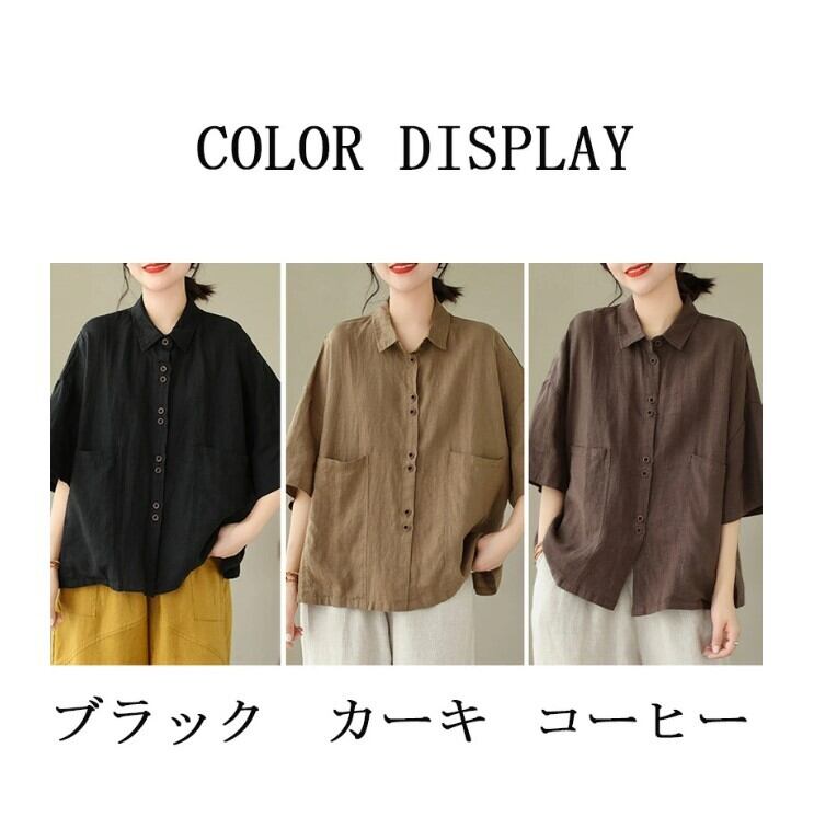 ■商品:シャツ 半袖 綿麻 半袖シャツ レディース 3色 M-2XL 無地 ゆったり ブラウス 夏 カジュアル 韓国 ファッション コーデ おすすめ カジュアル きれいめ 大きいサイズ 人気 ゆったり 20代 30代 40代 50代