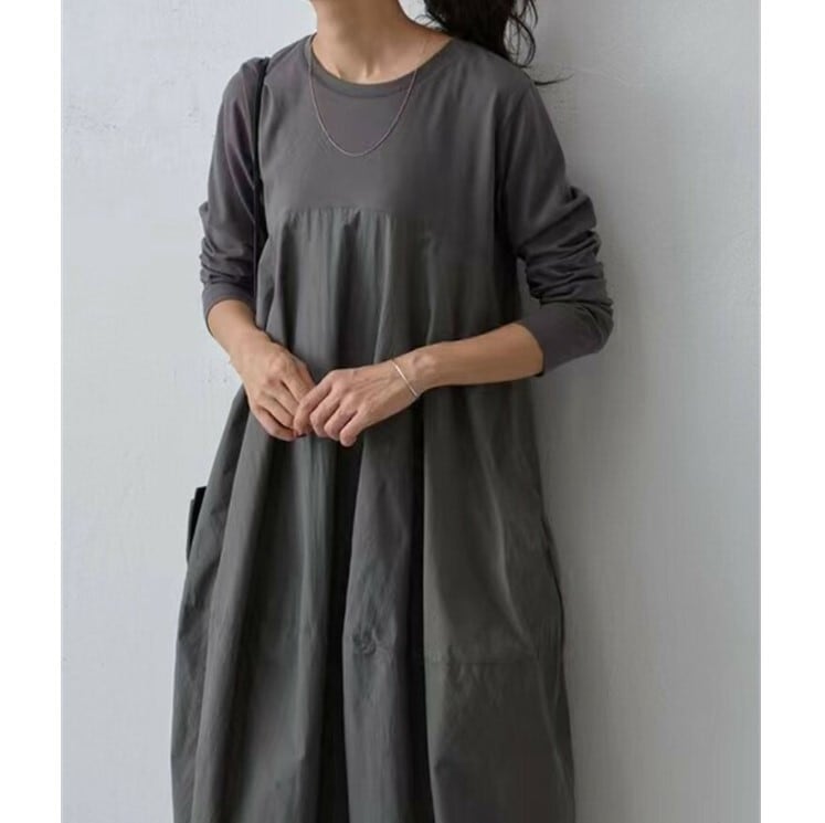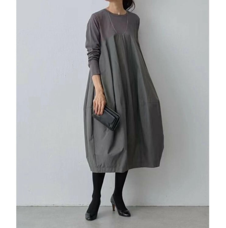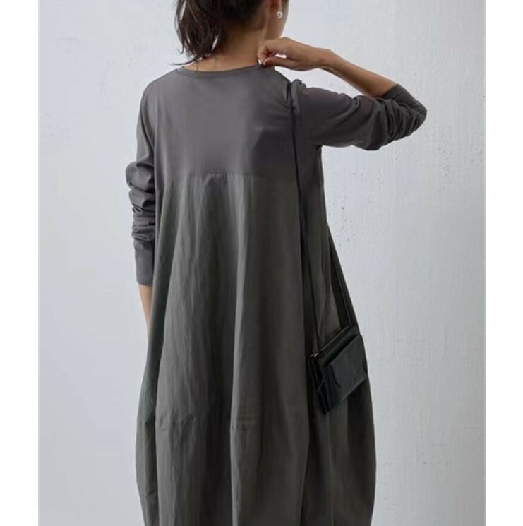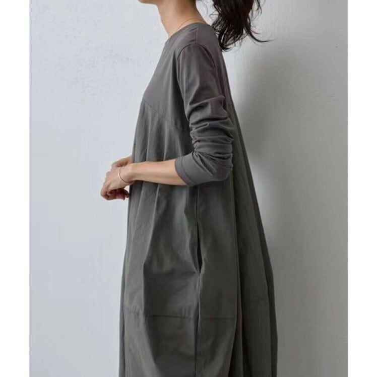 ■商品:ワンピース 長袖 コクーンワンピース レディース 2色 フリーサイズ マキシ丈 ゆったり きれいめ 無地 韓国 ファッション コーデ おすすめ カジュアル きれいめ 大きいサイズ 人気 ゆったり 20代 30代 40代 50代
