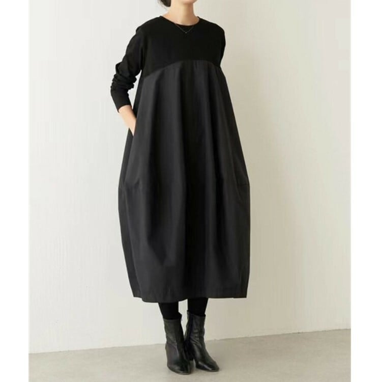 ワンピース 長袖 コクーンワンピース レディース 2色 フリーサイズ マキシ丈 ゆったり きれいめ 無地 26LT95