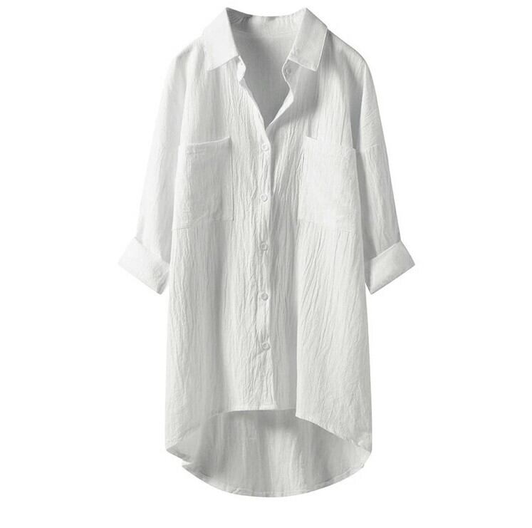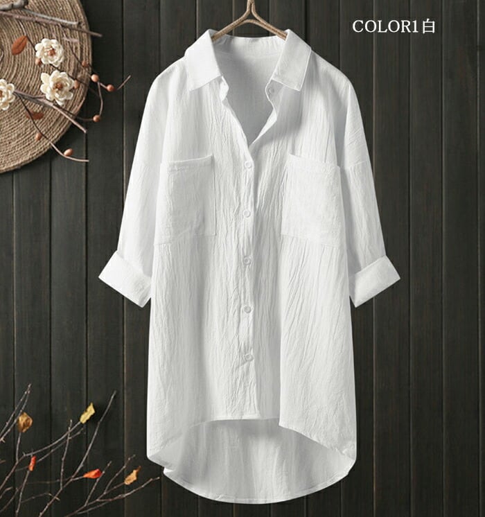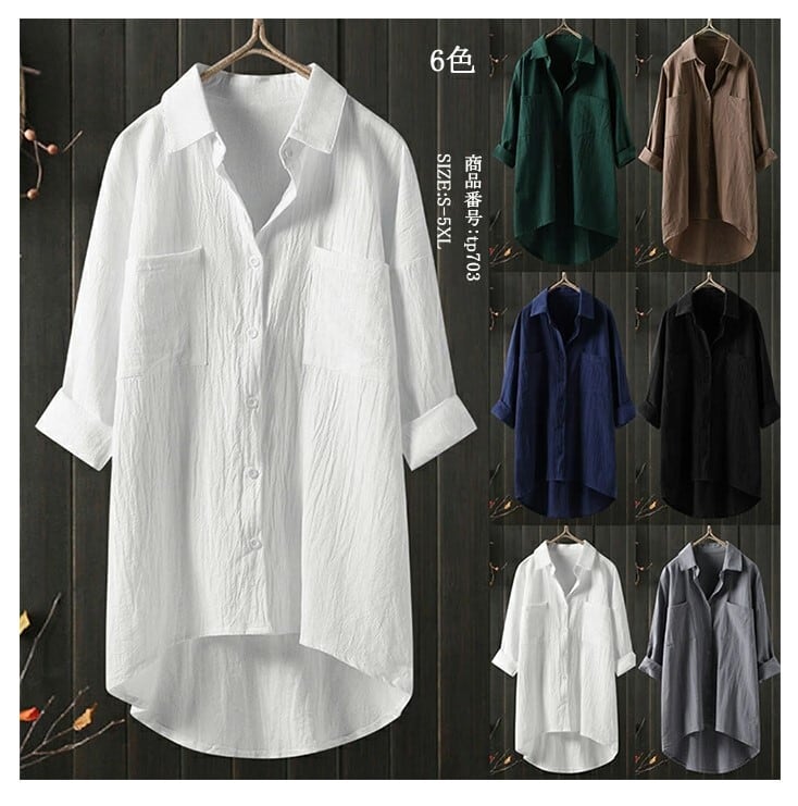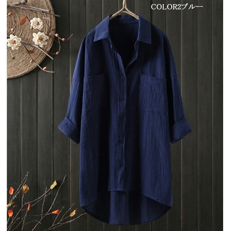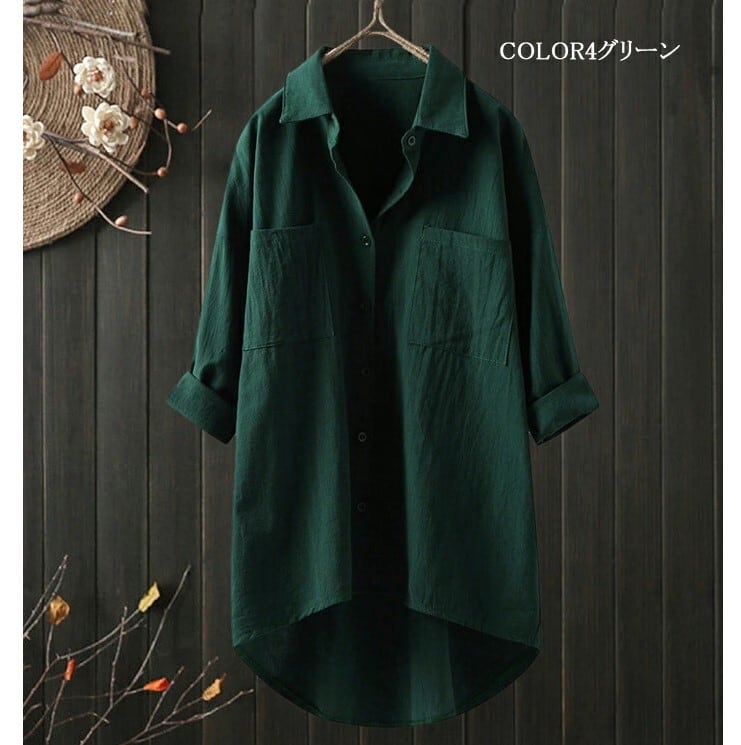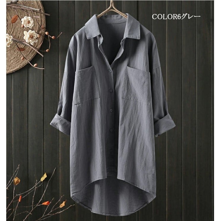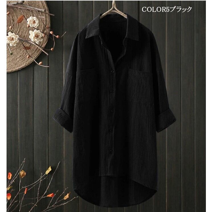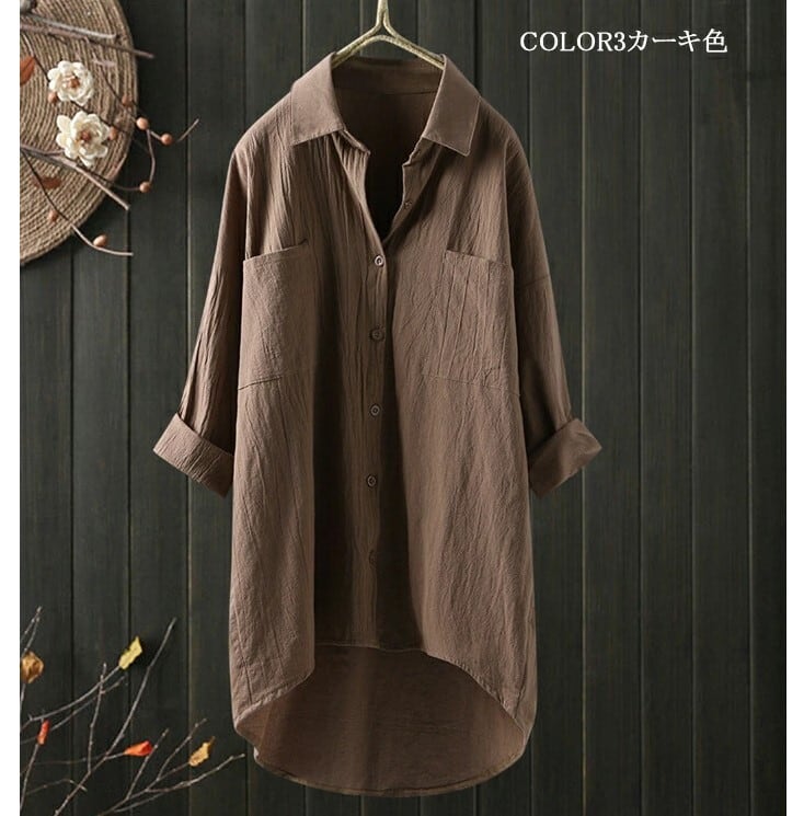 シャツ ロングシャツ 綿麻 レディース 6色 S-5XL 長袖 無地 長袖シャツ カジュアル 春夏 26LT97