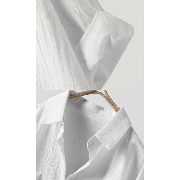 『こちらのシャツは、綿麻素材を使用しており、通気性が良く快適な着心地を実現しています。頑張りすぎないルックスながら、上品さも感じさせるルーズシルエットが魅力です。リラックスした印象ながら、カジュアルな日常使いにも最適で、ヘビロテ間違いなしの一枚です。』