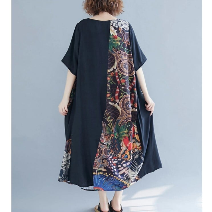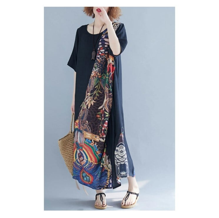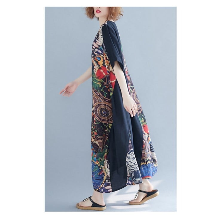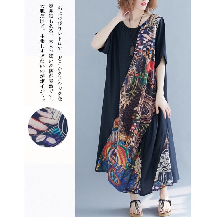 ワンピース 花柄 半袖 ロングワンピース レディース フリーサイズ ドッキング エスニック 夏 26LT100