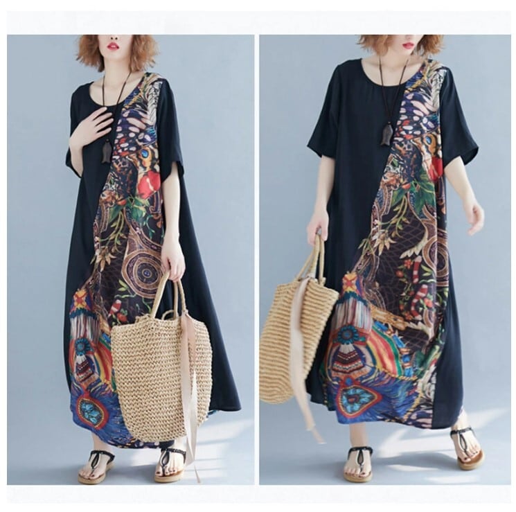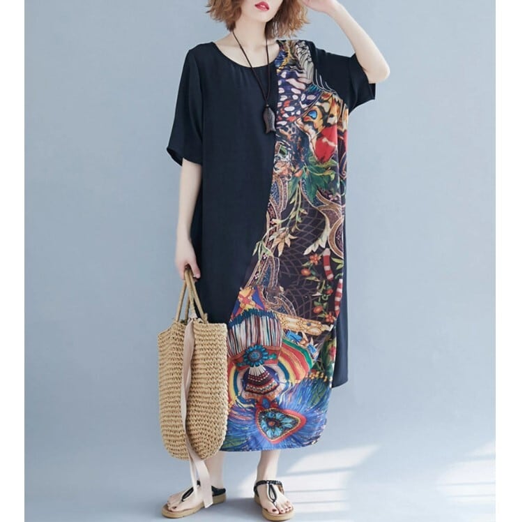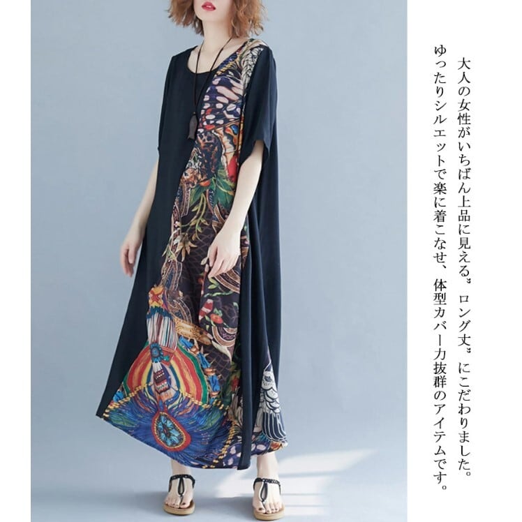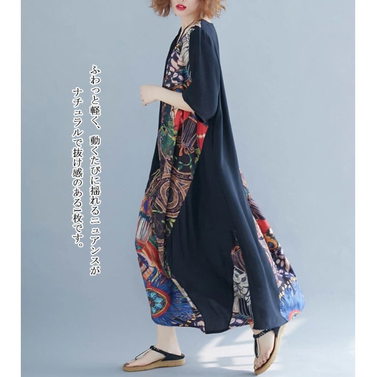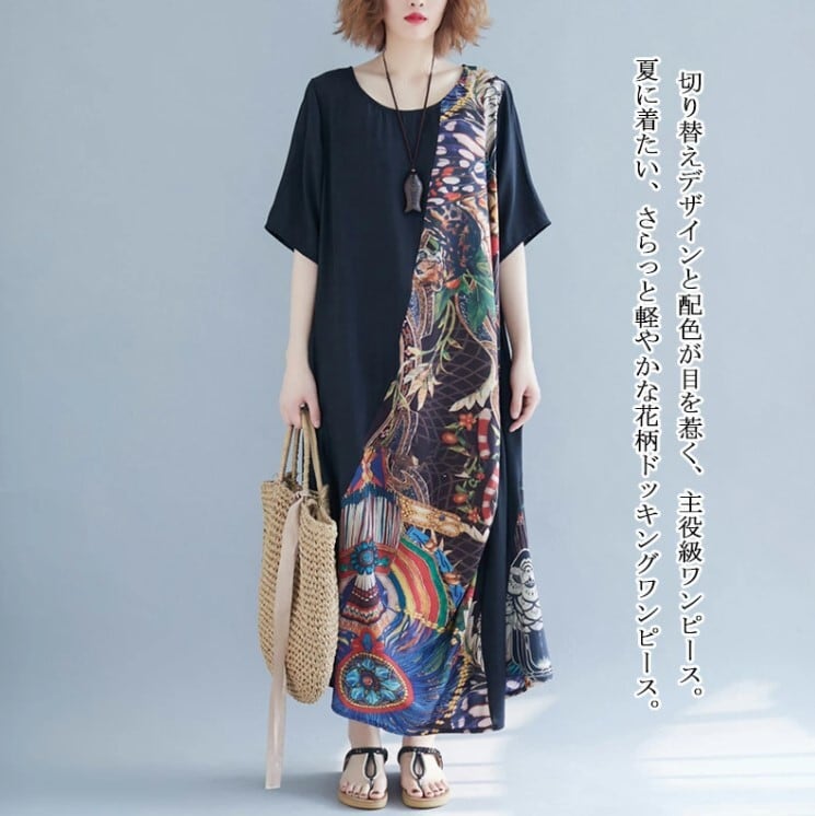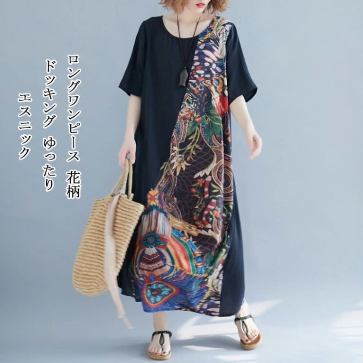■商品:ワンピース 花柄 半袖 ロングワンピース レディース フリーサイズ ドッキング エスニック 夏 韓国 ファッション コーデ おすすめ カジュアル きれいめ 大きいサイズ 人気 ゆったり 20代 30代 40代 50代