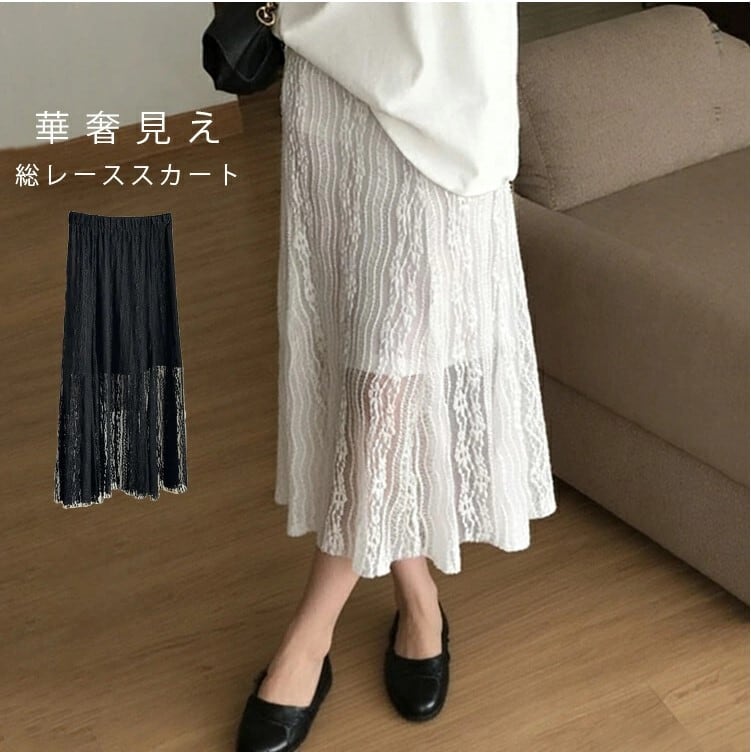 ■商品:ロングスカート 総レース レーススカート レディース 2色 フリーサイズ Aライン 裏地付き フレア 春夏 韓国 ファッション コーデ おすすめ カジュアル きれいめ 大きいサイズ 人気 ゆったり 20代 30代 40代 50代