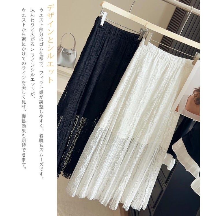 ★特徴:軽やかな素材で、春夏のコーディネートにぴったりなロングスカートです!総レースデザインが優雅な印象を与え、どんなシーンでも華やかに演出します。フリーサイズで、体型を気にせず快適に着こなせるのが魅力です。