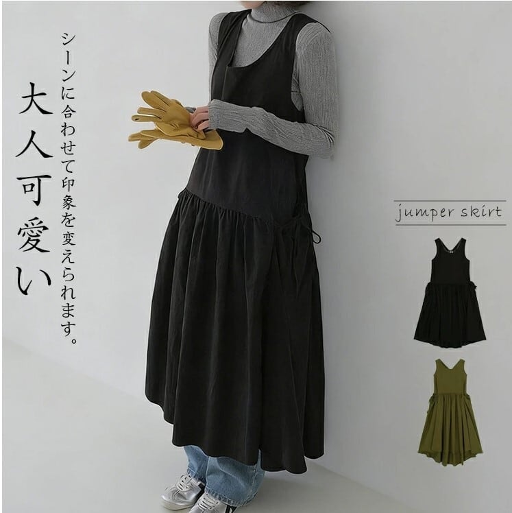 ■商品:ジャンパースカート サロペット レディース 2色 フリーサイズ マキシ丈 キャミソールワンピース 春夏 韓国 ファッション コーデ おすすめ カジュアル きれいめ 大きいサイズ 人気 ゆったり 20代 30代 40代 50代