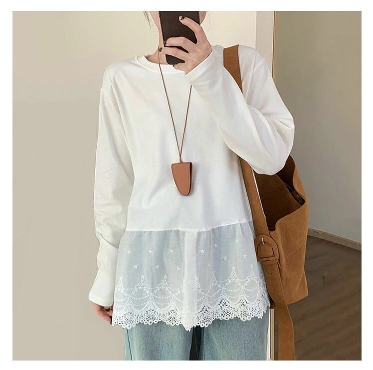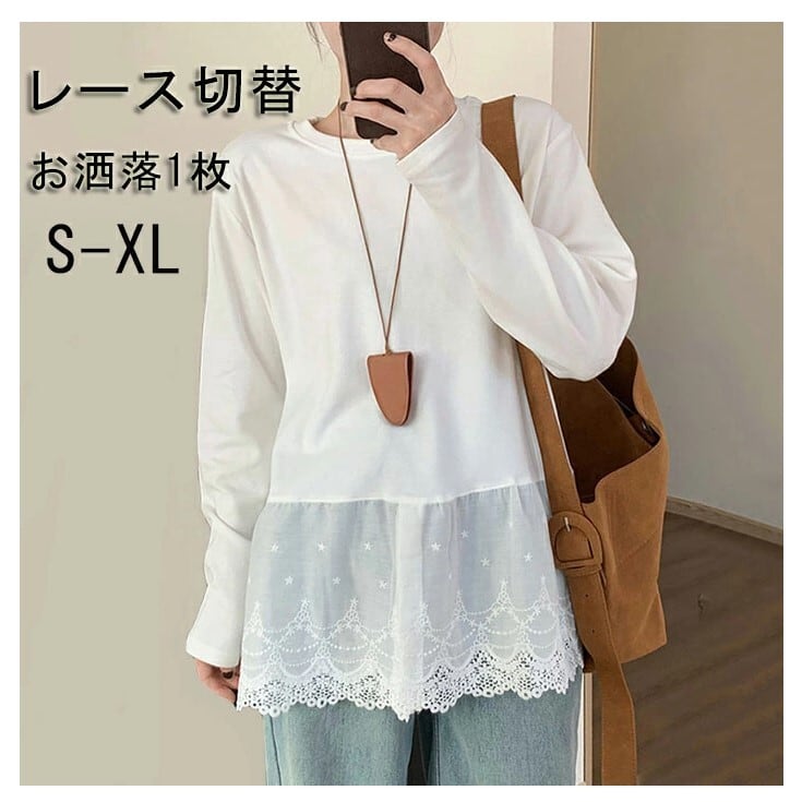 チュニック ブラウス 長袖 レディース 白 S-XL カットソー プルオーバー 大人可愛い 春夏 26LT104