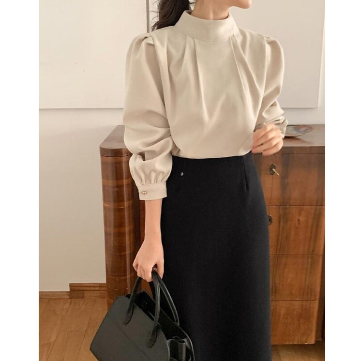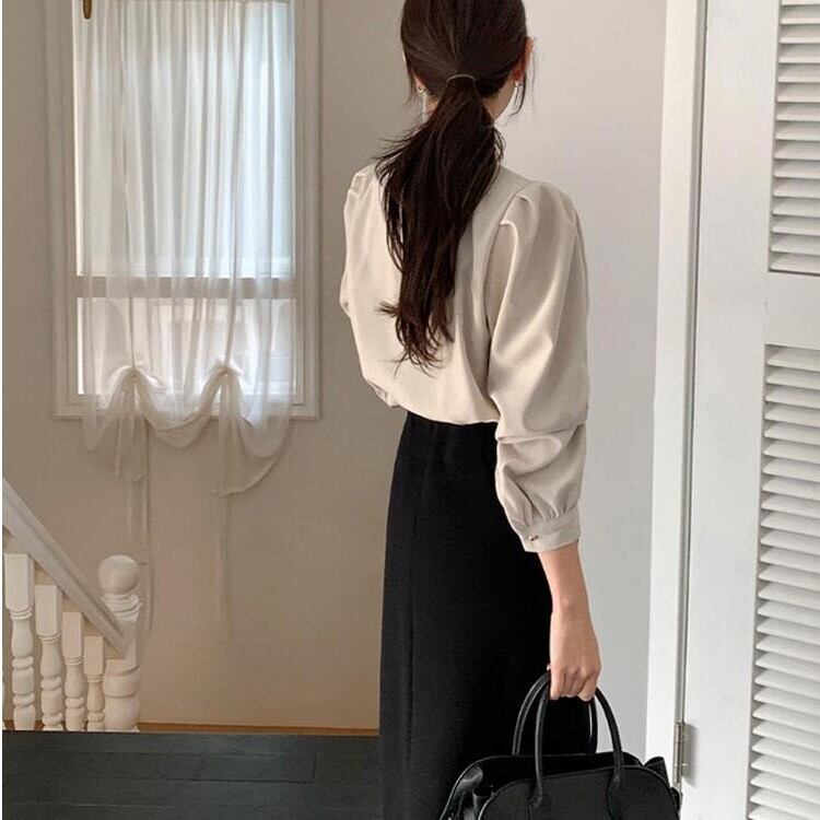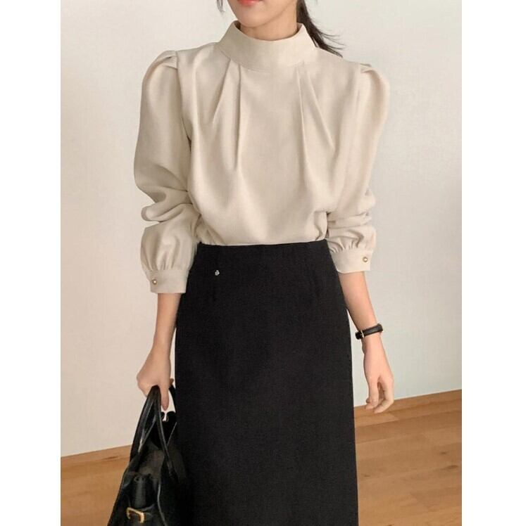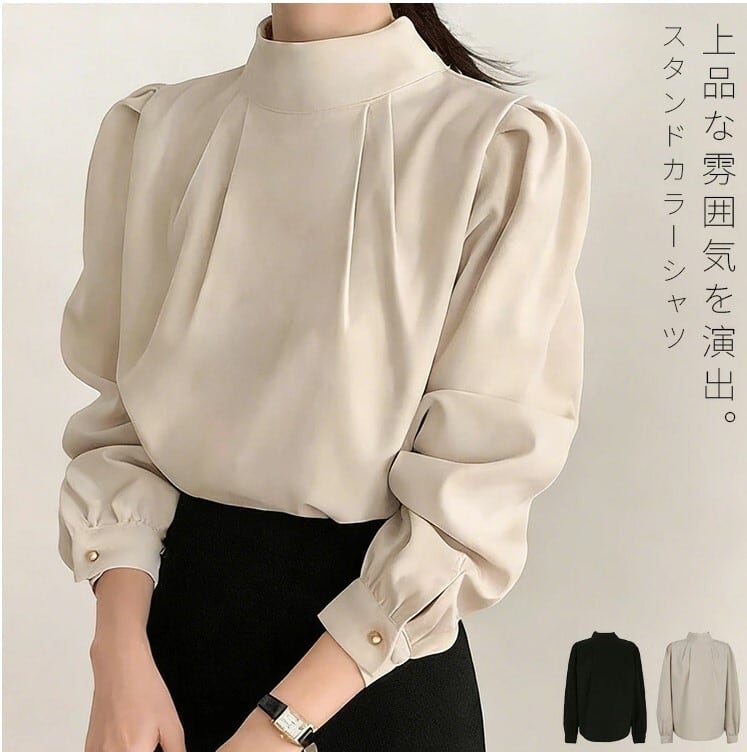 ■商品:シャツ ブラウス レディース 2色 フリーサイズ スタンドカラー 長袖 大人 オフィス 春秋 韓国 ファッション コーデ おすすめ カジュアル きれいめ 大きいサイズ 人気 ゆったり 20代 30代 40代 50代