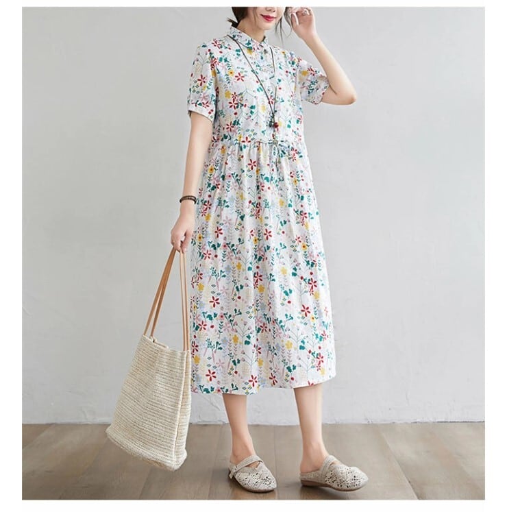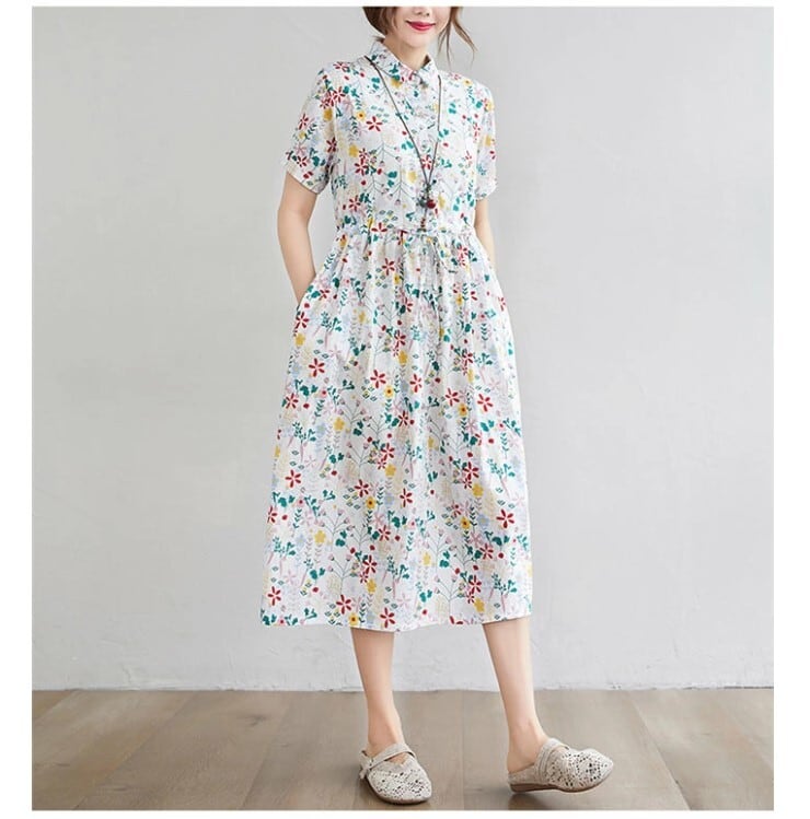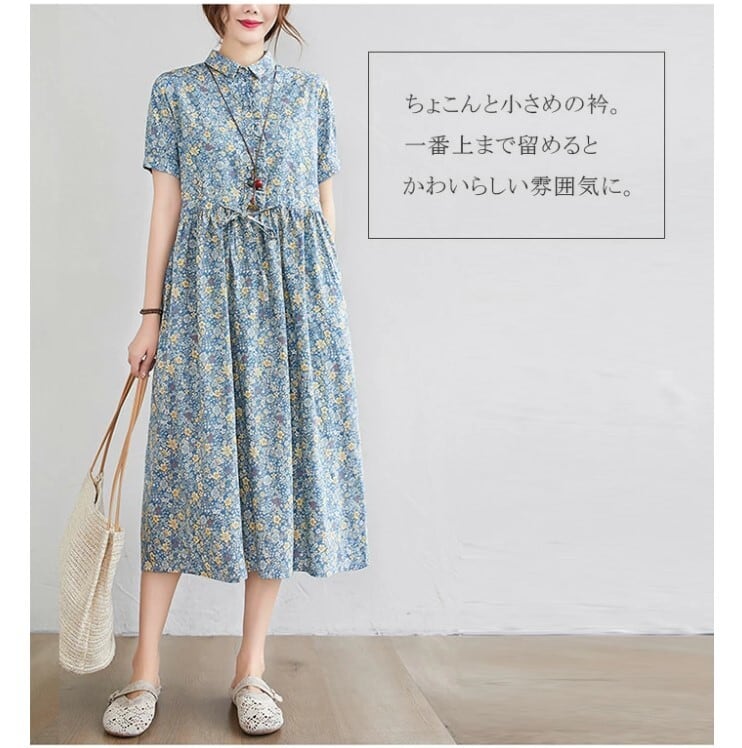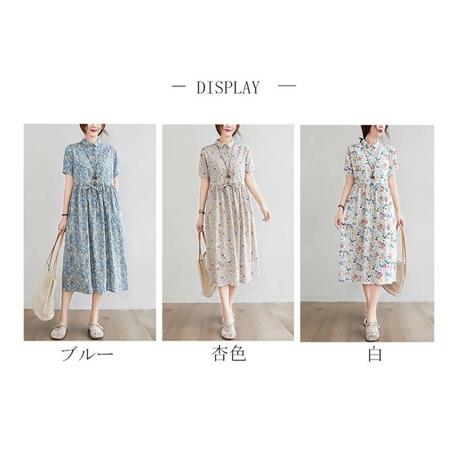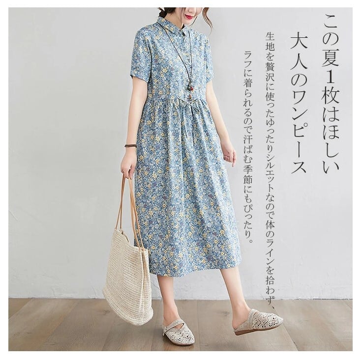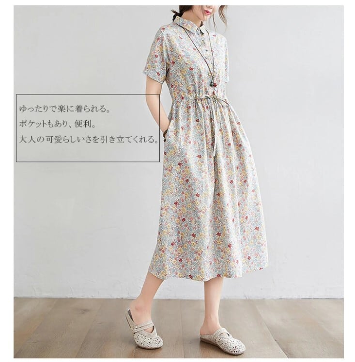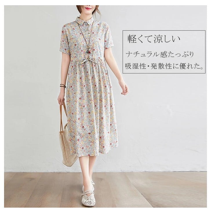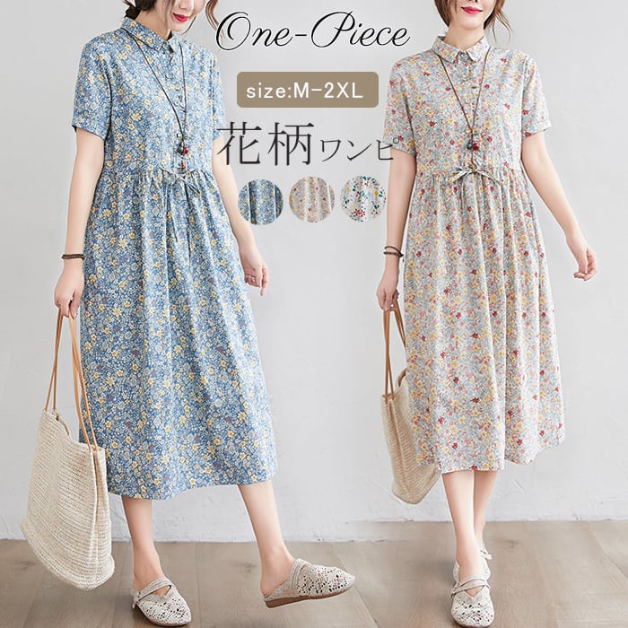 ワンピース ロングワンピース 半袖 レディース 3色 M-2XL 花柄 ミモレ丈 上品 カジュアル 26LT142