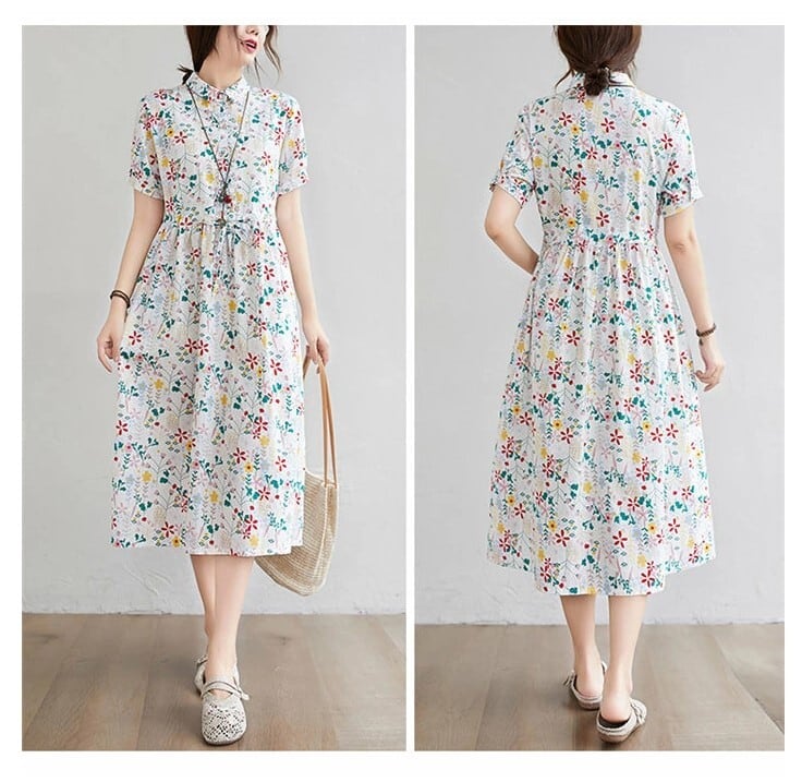 ■商品:ワンピース ロングワンピース 半袖 レディース 3色 M-2XL 花柄 ミモレ丈 上品 カジュアル 韓国 ファッション コーデ おすすめ カジュアル きれいめ 大きいサイズ 人気 ゆったり 20代 30代 40代 50代