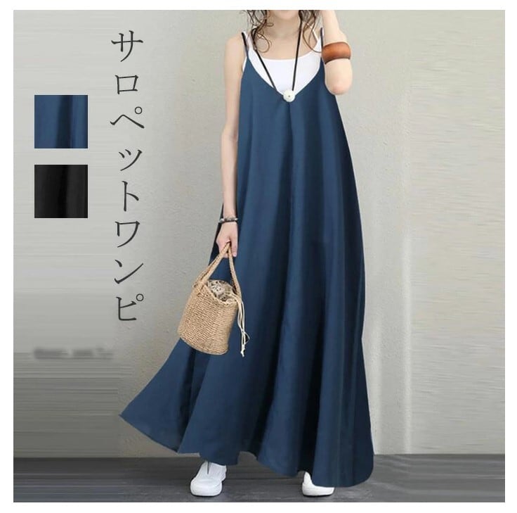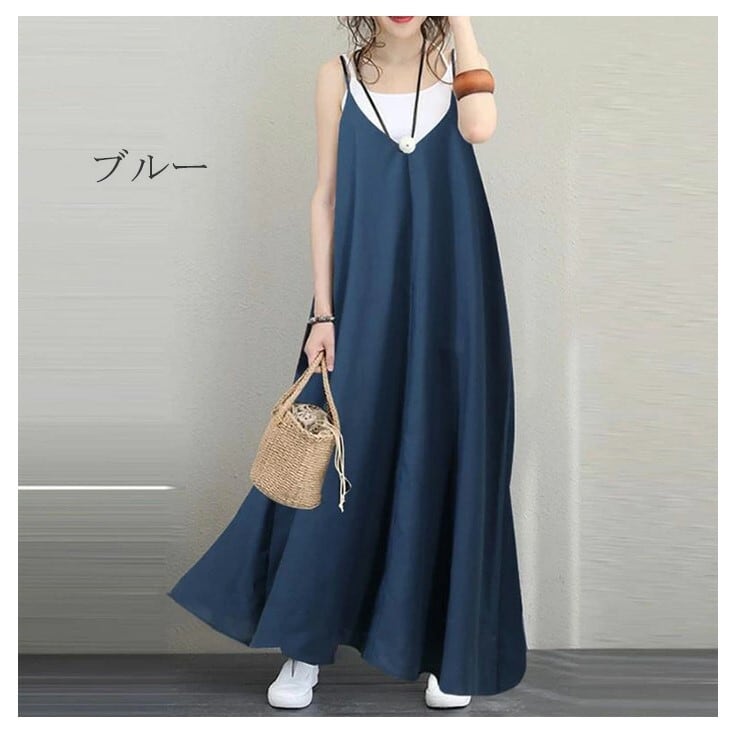 ワンピース 綿麻 サロペット レディース 2色 フリーサイズ 無地 ゆったり カジュアル 26LT146