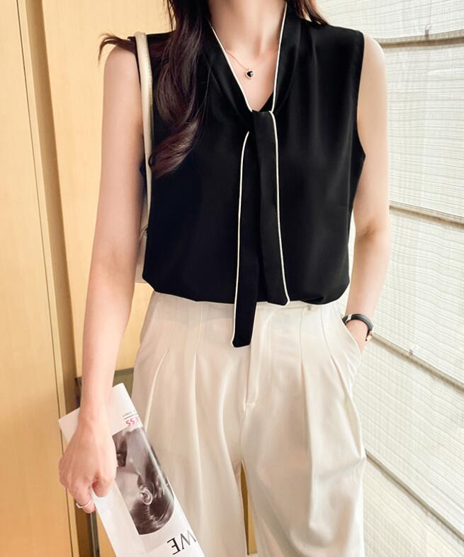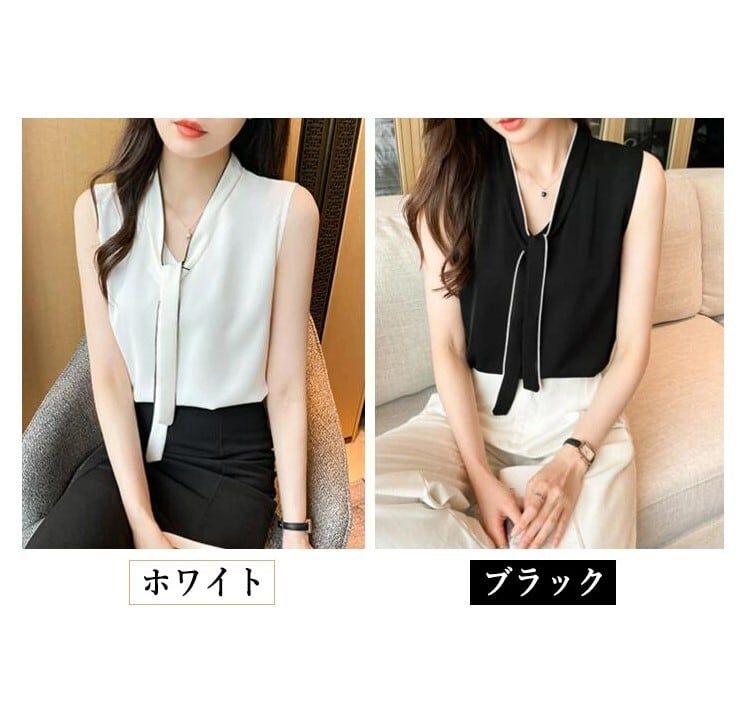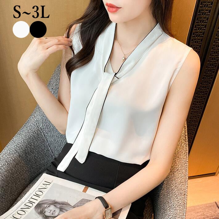 ■商品:ブラウス ノースリーブ レディース 2色 S-3L ボウタイブラウス フォーマル オフィス きれいめ 韓国 ファッション コーデ おすすめ カジュアル きれいめ 大きいサイズ 人気 ゆったり 20代 30代 40代 50代