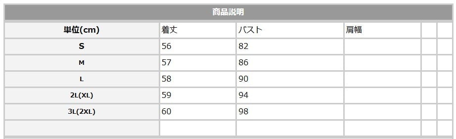 ★サイズ:S,M,L,2L,3L