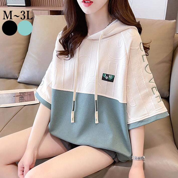 ■商品:半袖パーカー プルオーバー レディース 2色 M-3L tシャツ フード付き カジュアル 韓国 ファッション コーデ おすすめ カジュアル きれいめ 大きいサイズ 人気 ゆったり 20代 30代 40代 50代