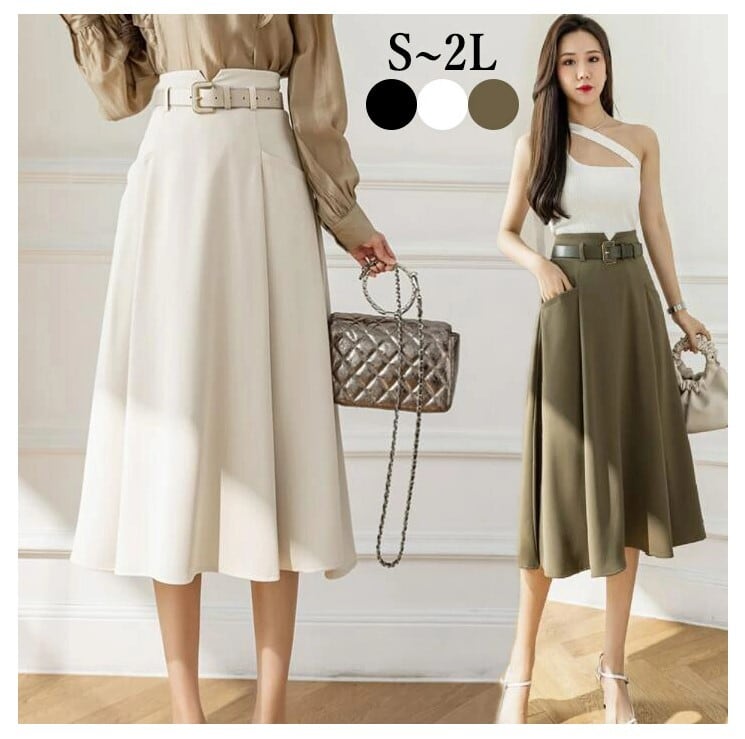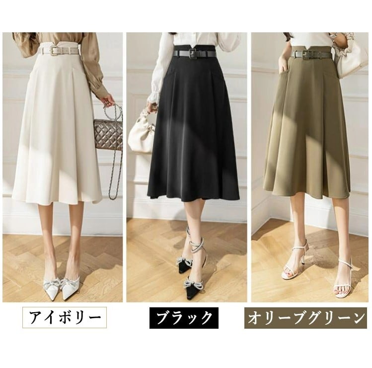 ■商品:スカート フレアスカート ひざ丈 レディース 3色 S-2L Aライン オフィス OL 韓国 ファッション コーデ おすすめ カジュアル きれいめ 大きいサイズ 人気 ゆったり 20代 30代 40代 50代