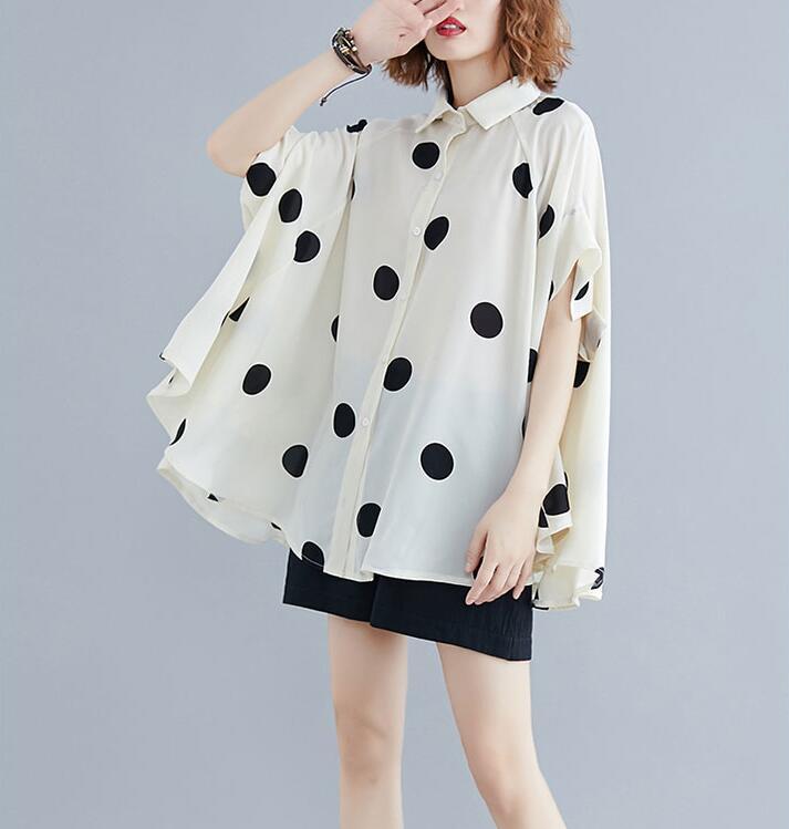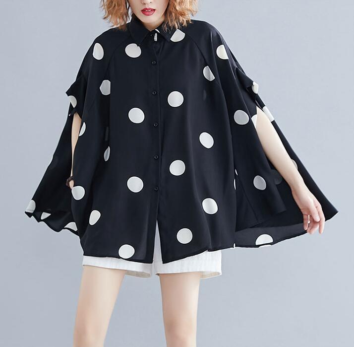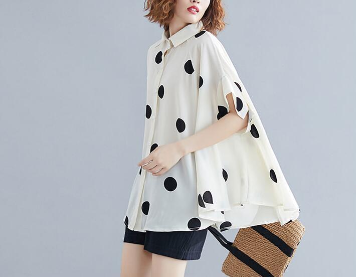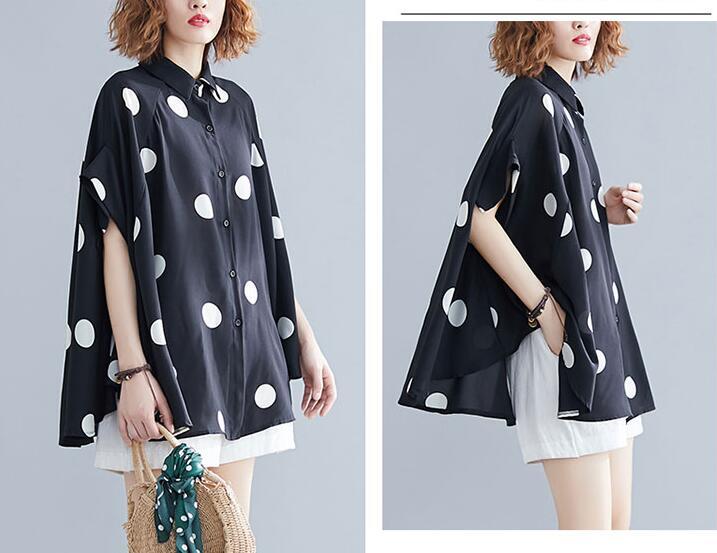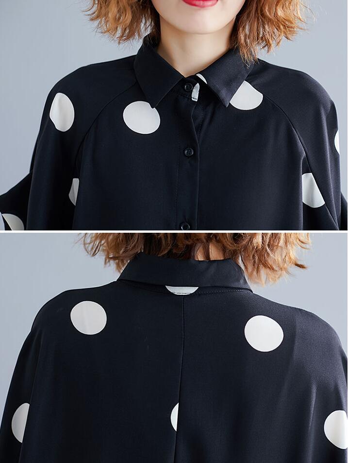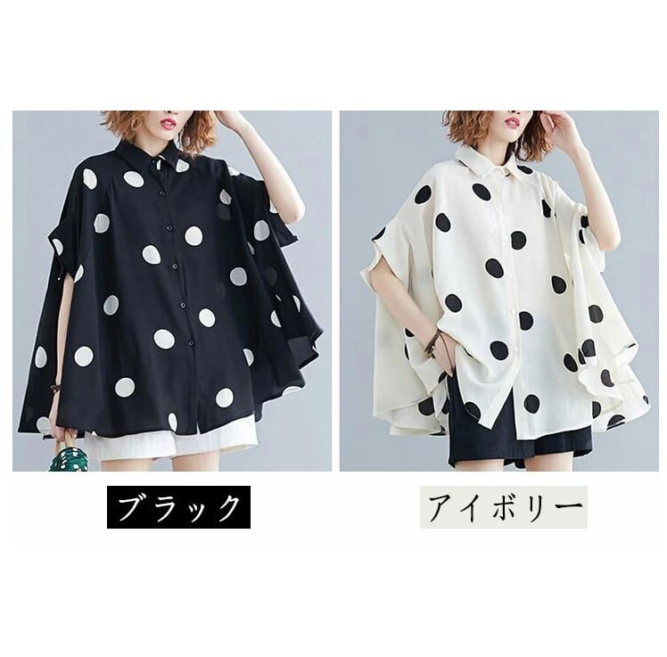 ■商品: ドルマン フィッシュテール ブラウス レディース 2色 フリーサイズ シャツ ドット柄 カジュアル 韓国 ファッション コーデ おすすめ カジュアル きれいめ 大きいサイズ 人気 ゆったり 20代 30代 40代 50代
