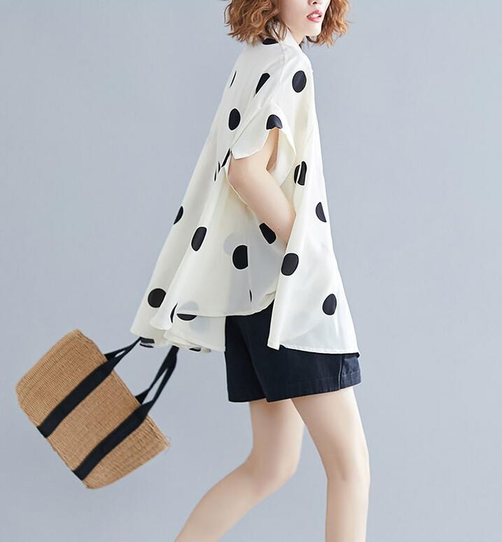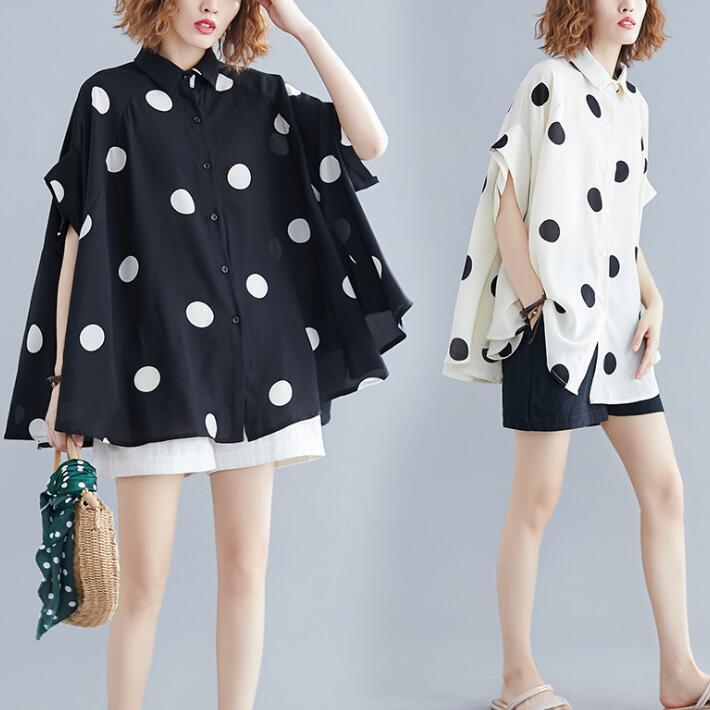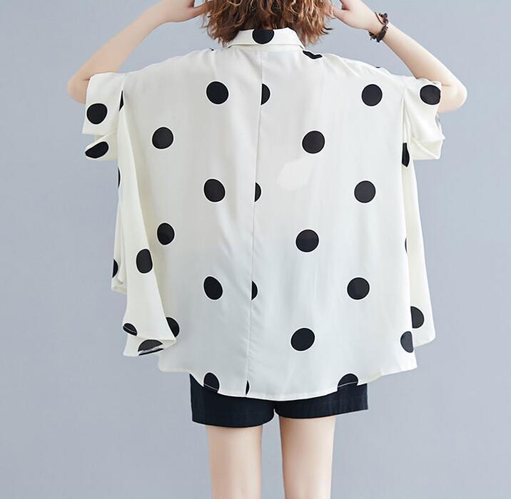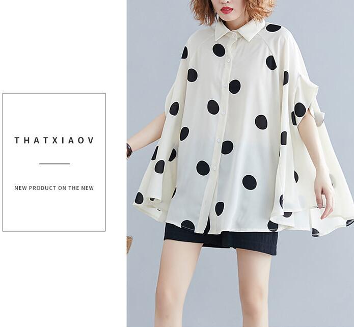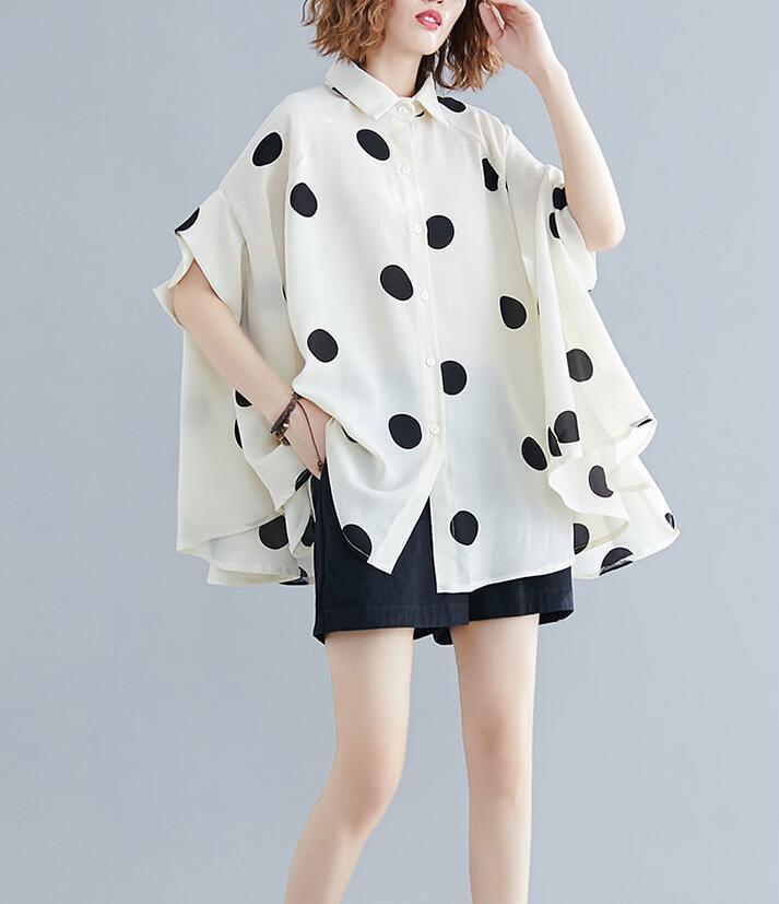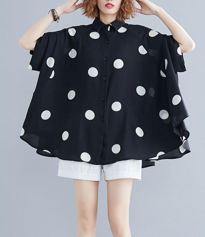 ■商品: ドルマン フィッシュテール ブラウス レディース 2色 フリーサイズ シャツ ドット柄 カジュアル 韓国 ファッション コーデ おすすめ カジュアル きれいめ 大きいサイズ 人気 ゆったり 20代 30代 40代 50代