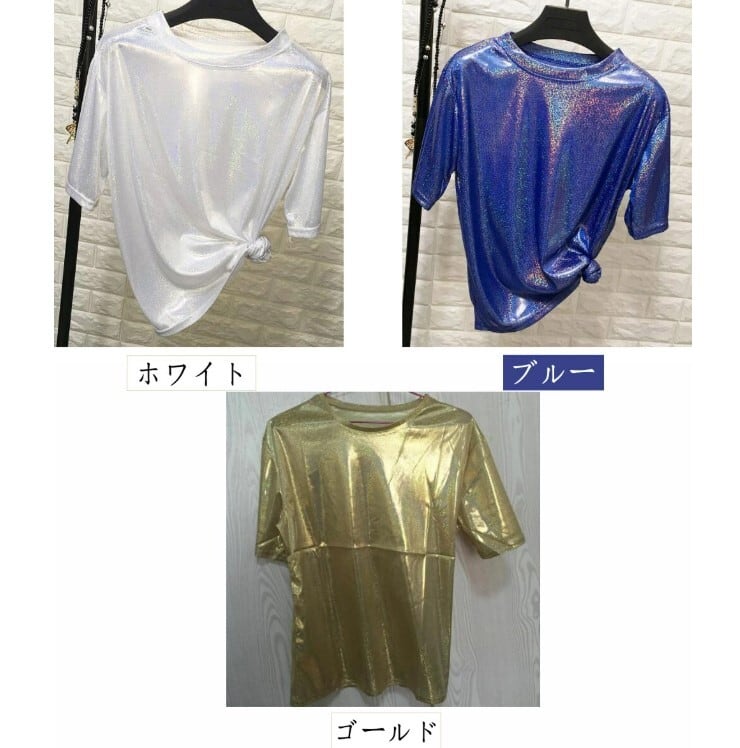 ★特徴:キラキラとした輝きが目を引くこのtシャツは、特別な日やパーティーシーンで大活躍するアイテムです。フリーサイズなので、さまざまな体型の方にフィットし、ダンス衣装としてもぴったりです。6色の鮮やかなカラーバリエーションを揃えており、その日の気分やシーンに合わせて選ぶことができます。このtシャツを取り入れて、あなたのスタイルを一段と引き立てて、注目を集めてみませんか?