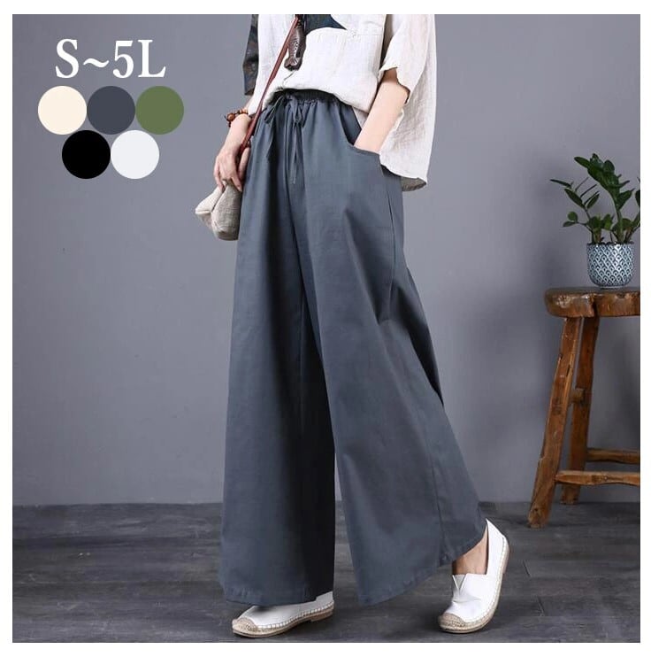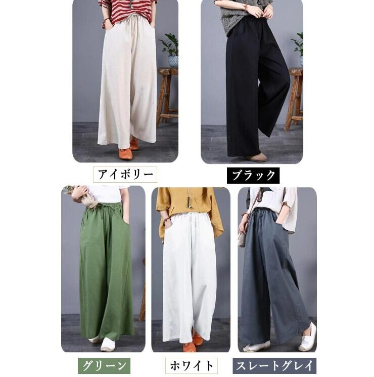 ■商品: ワイドパンツ 綿麻 レディース 5色 S-5L ゆったり ウエストゴム リネン 春夏 韓国 ファッション コーデ おすすめ カジュアル きれいめ 大きいサイズ 人気 ゆったり 20代 30代 40代 50代