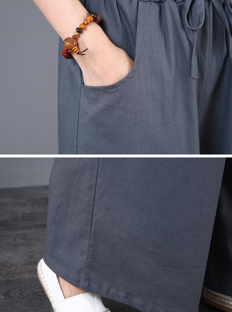 ワイドパンツ 綿麻 レディース 5色 S-5L ゆったり ウエストゴム リネン 春夏 26LT168