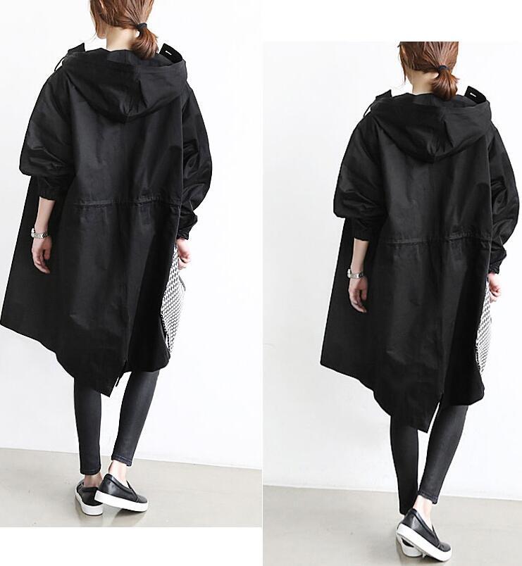 スプリングコート ロングコート レディース 2色 S-4L ライトアウター フード付き カジュアル 春秋 26LT172
