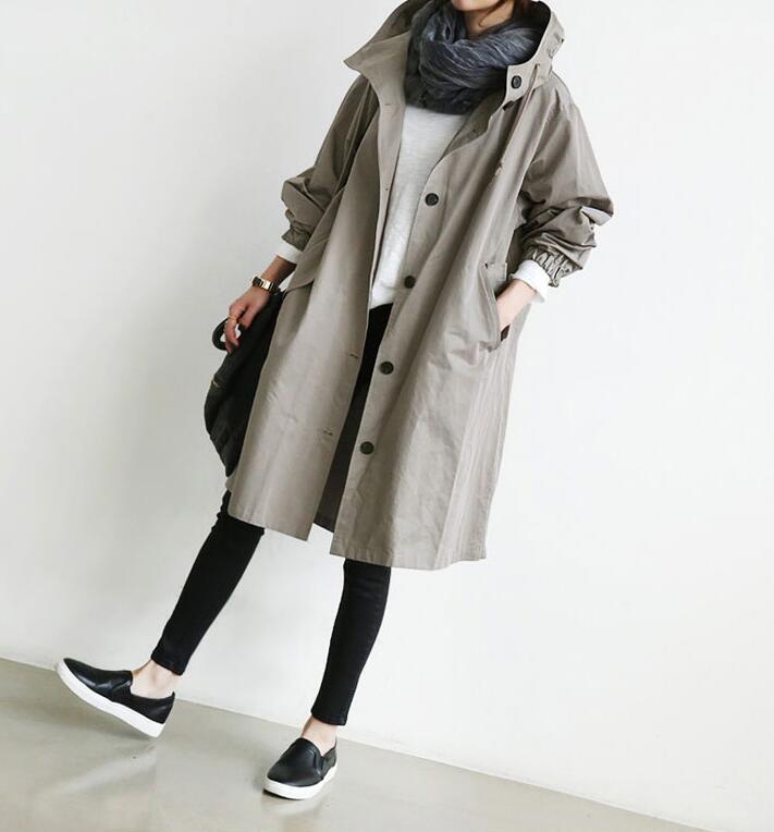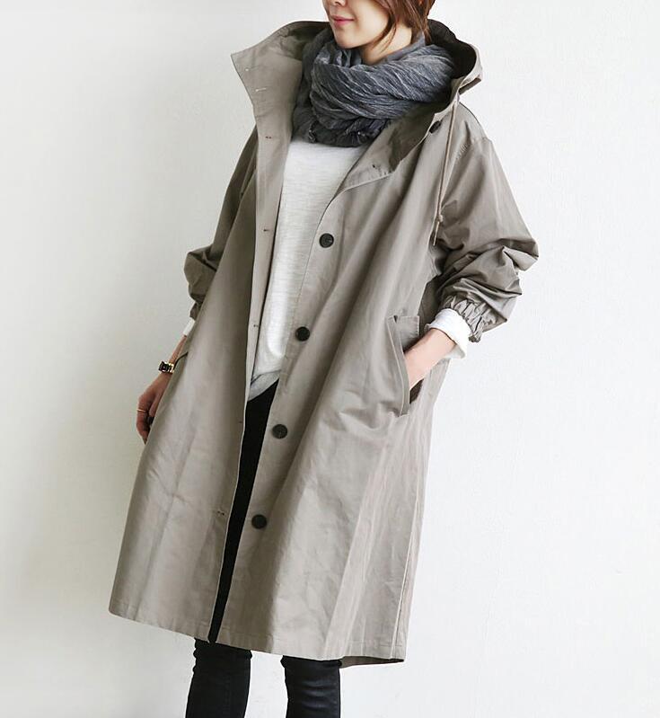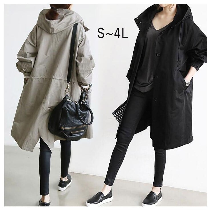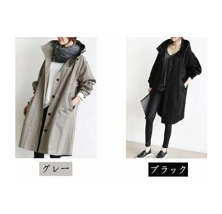 ■商品: スプリングコート ロングコート レディース 2色 S-4L ライトアウター フード付き カジュアル 春秋 韓国 ファッション コーデ おすすめ カジュアル きれいめ 大きいサイズ 人気 ゆったり 20代 30代 40代 50代