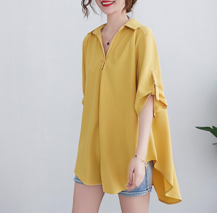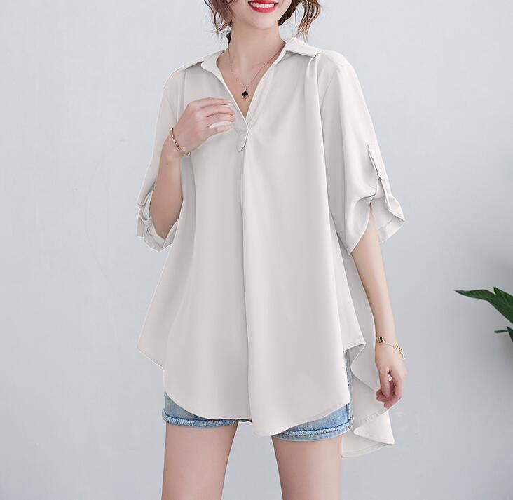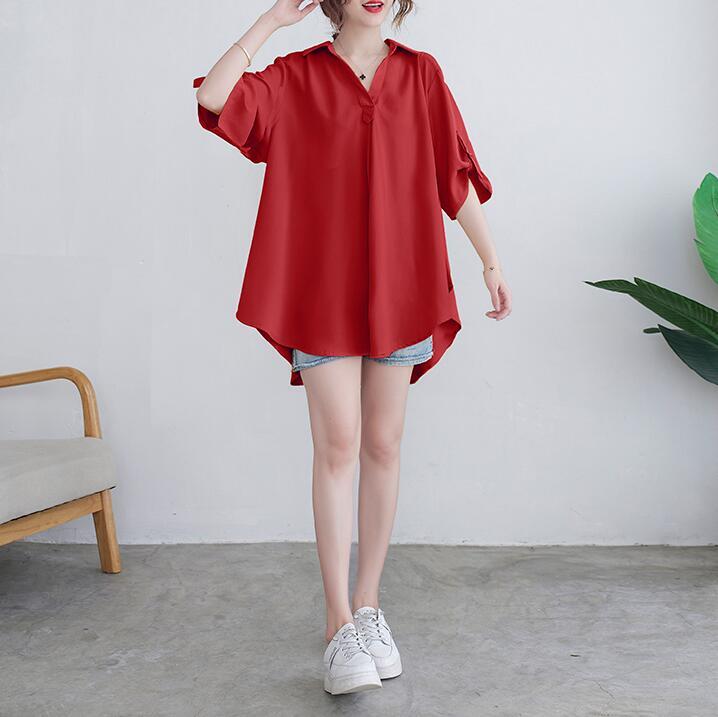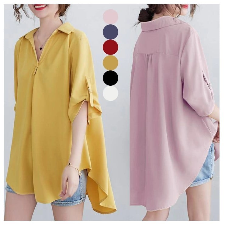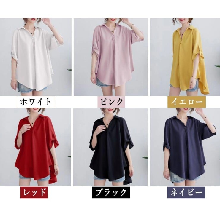 ■商品: ブラウス シャツ 5分袖 レディース 6色 フリーサイズ フィッシュテール ゆったり オフィス カジュアル 韓国 ファッション コーデ おすすめ カジュアル きれいめ 大きいサイズ 人気 ゆったり 20代 30代 40代 50代