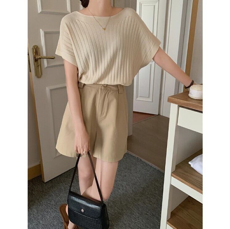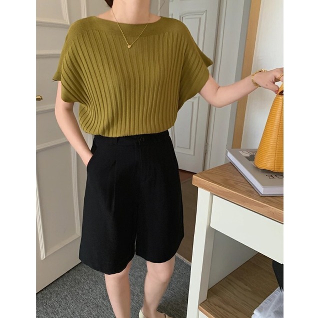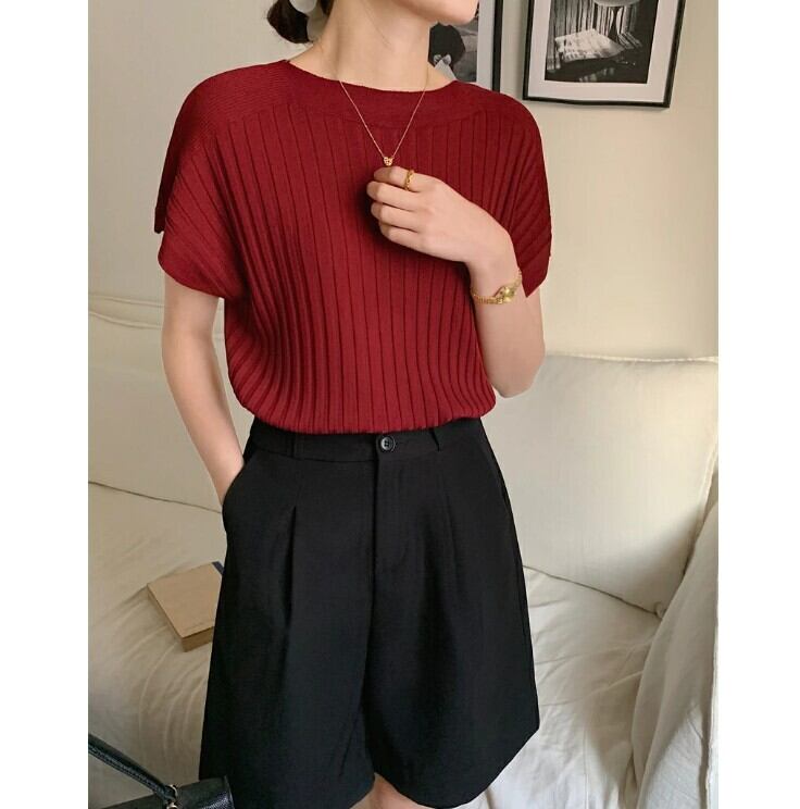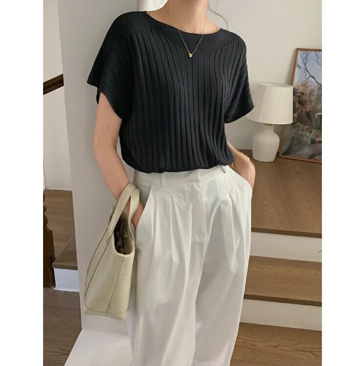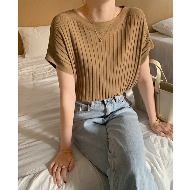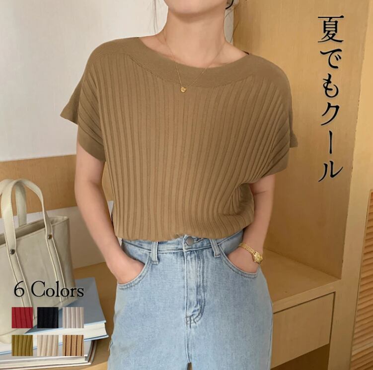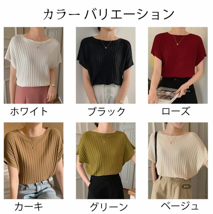 ■商品:カットソー 半袖 レディース 6色 フリーサイズ リブニット きれいめ ニットソー カジュアル 韓国 ファッション コーデ おすすめ カジュアル きれいめ 大きいサイズ 人気 ゆったり 20代 30代 40代 50代